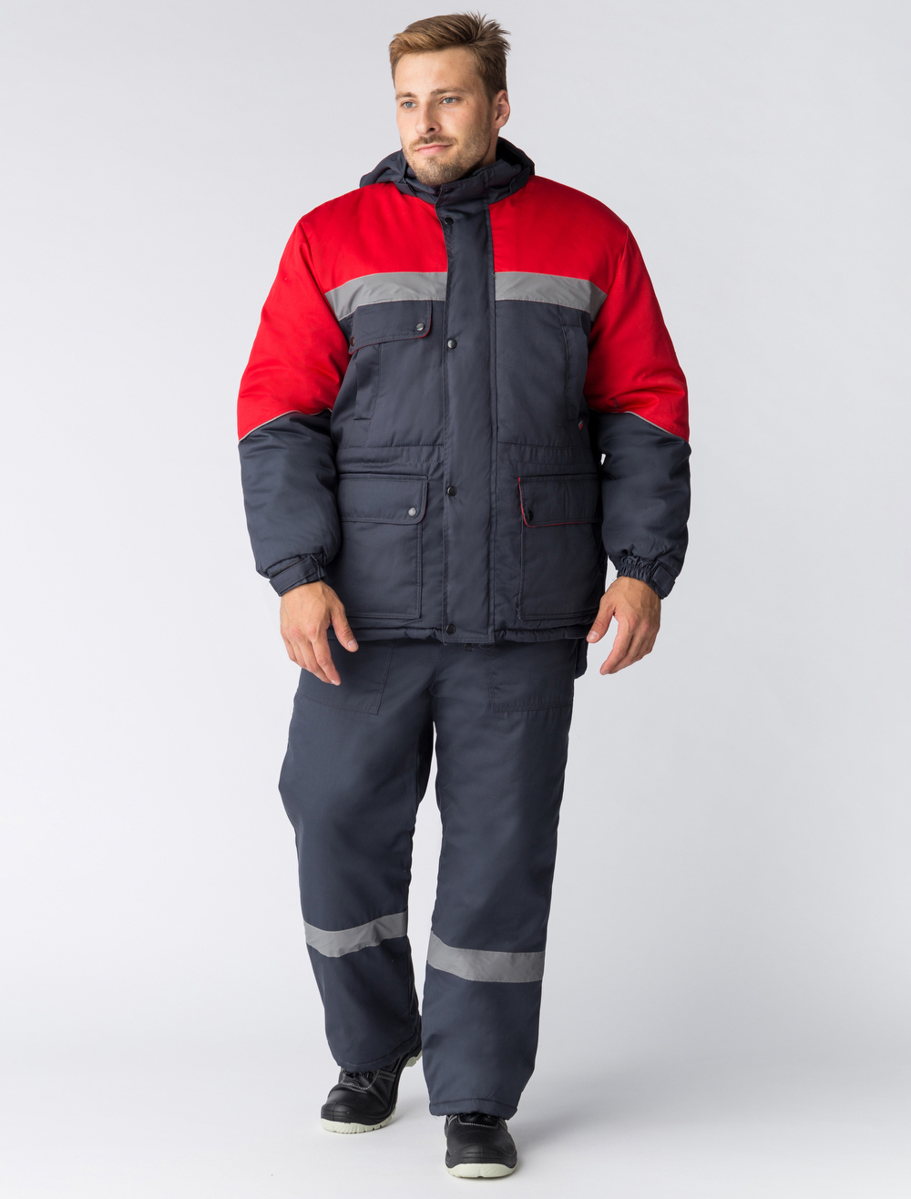 Костюм зимний Сибер СОП (тк.Балтекс,210) п/к, т.серый/красный