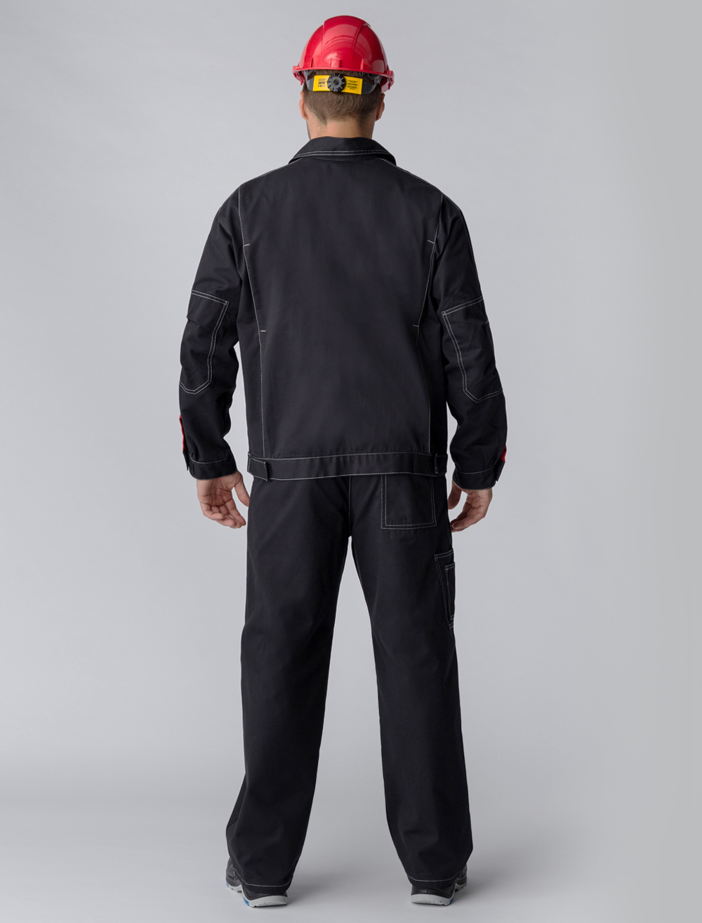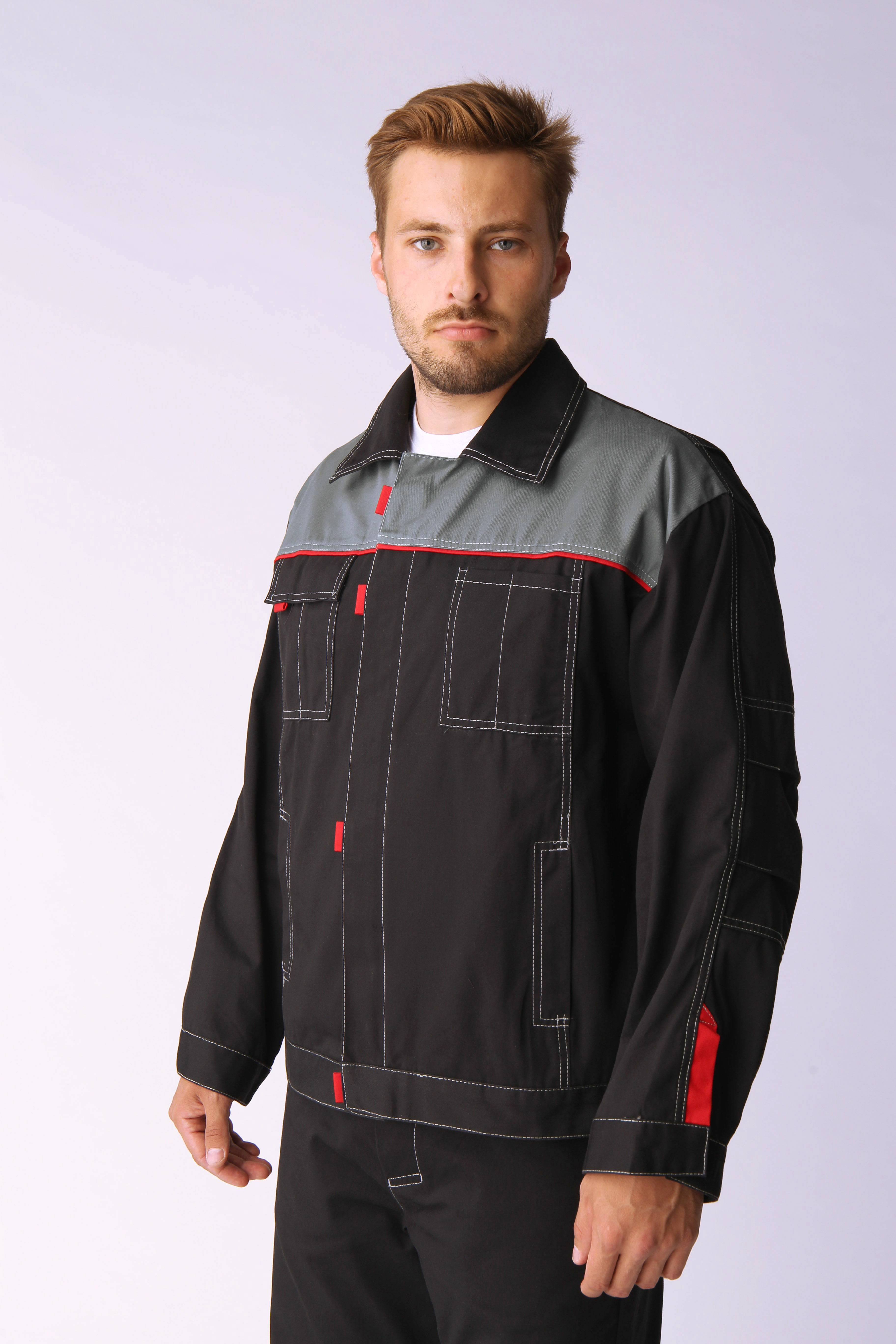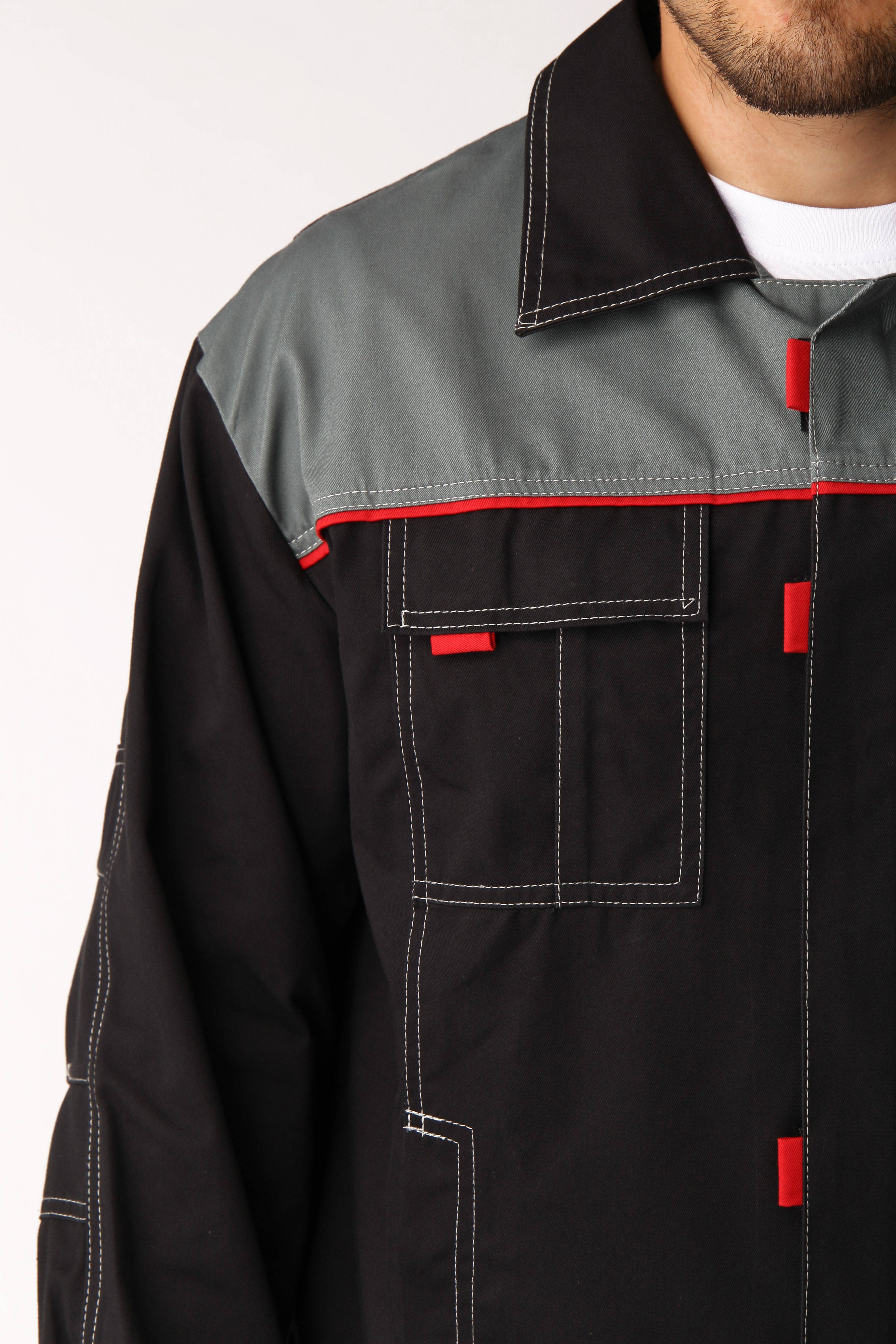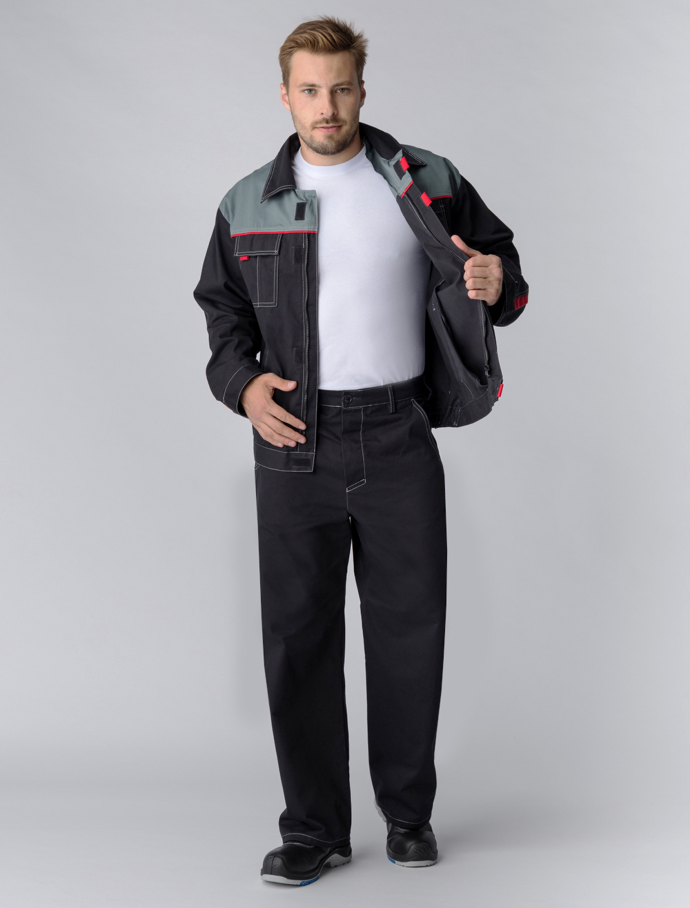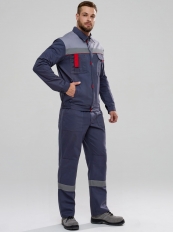 Костюм Флофт-1 СОП (тк.Саржа,250) брюки, т.серый/св.серый/красный