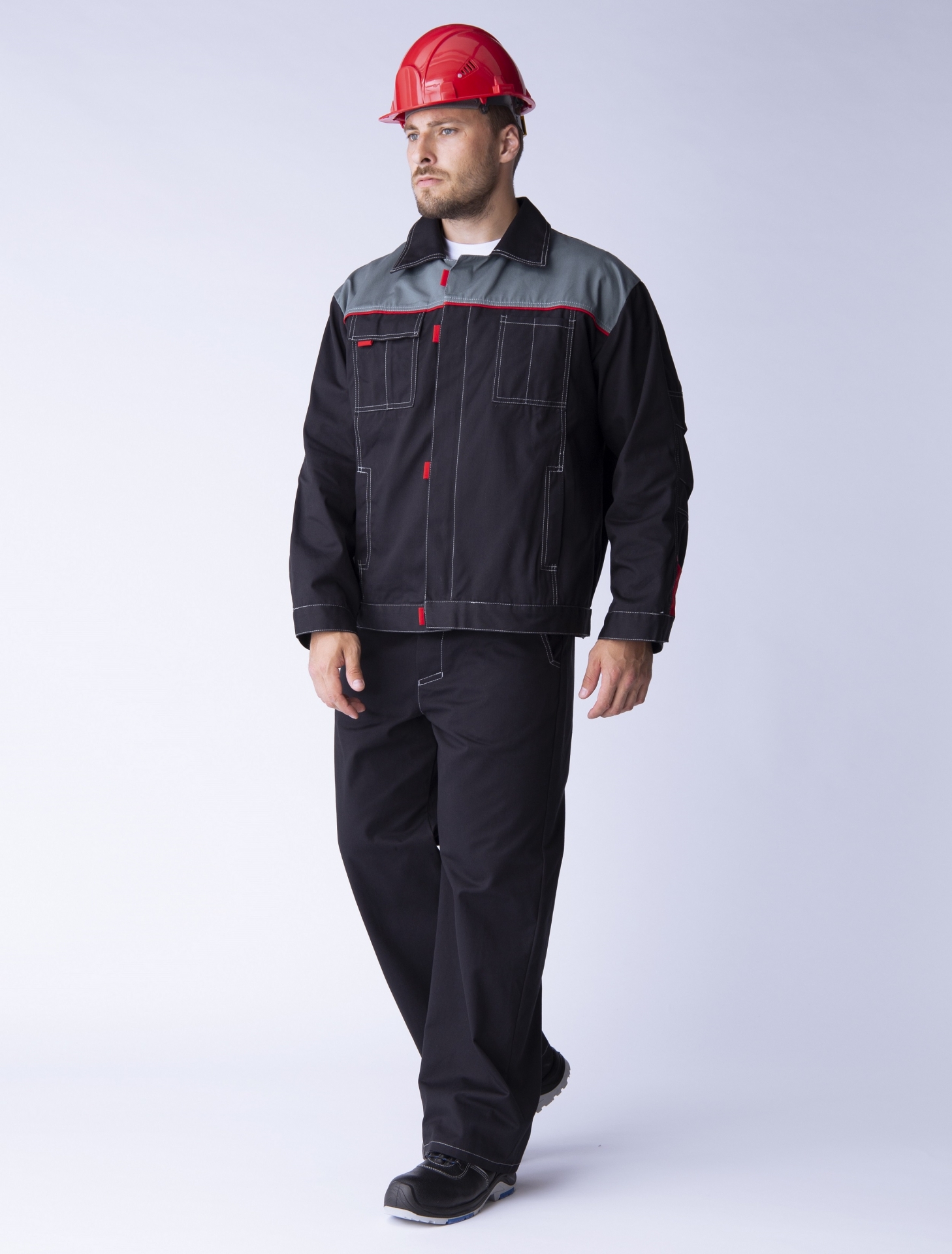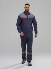 Костюм Флофт-2 СОП (тк.Саржа,250) п/к, т.серый/св.серый/красный