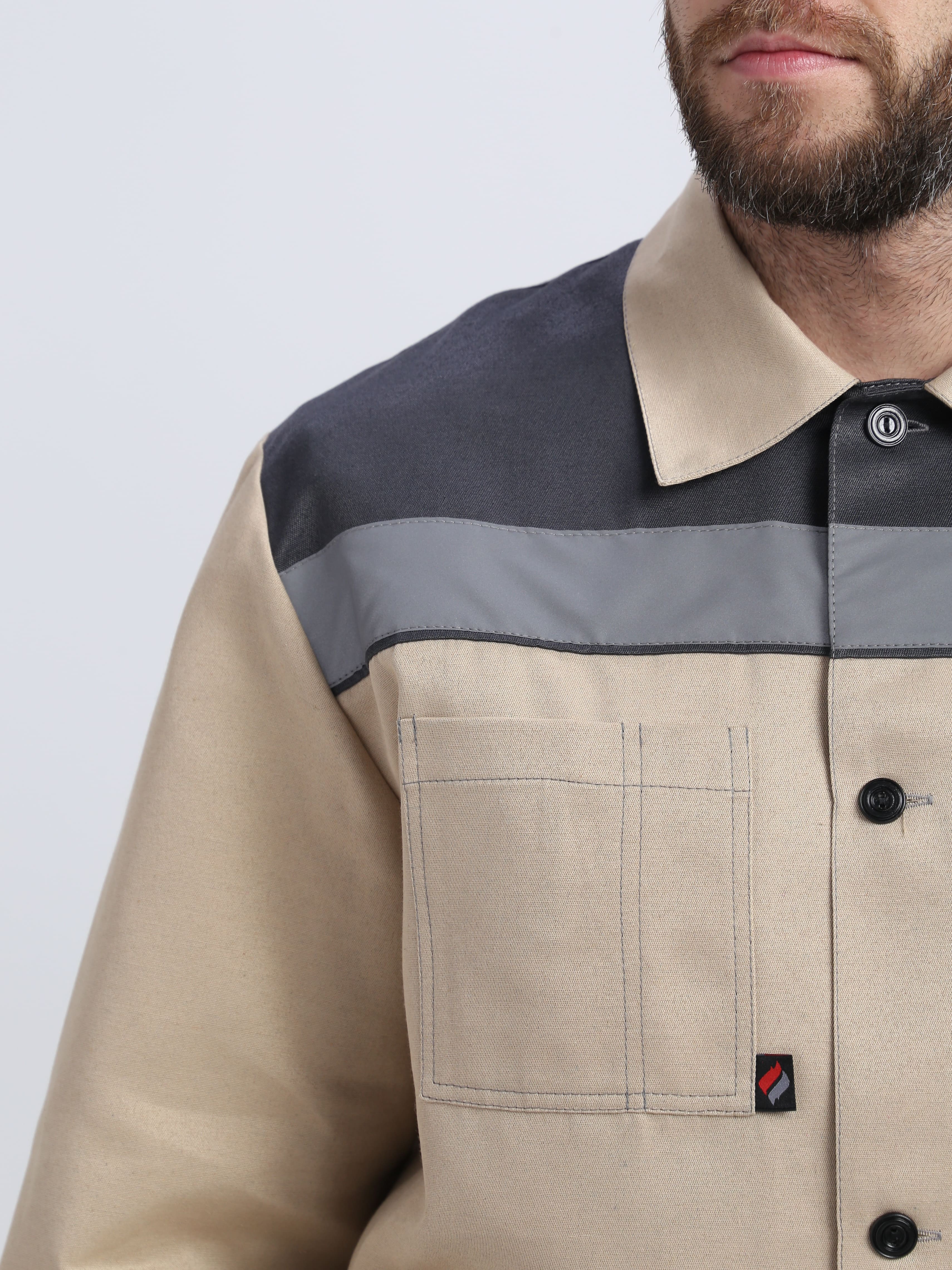 - Светоотражающие элементы на кокетках и манжетах рукавов для безопасности