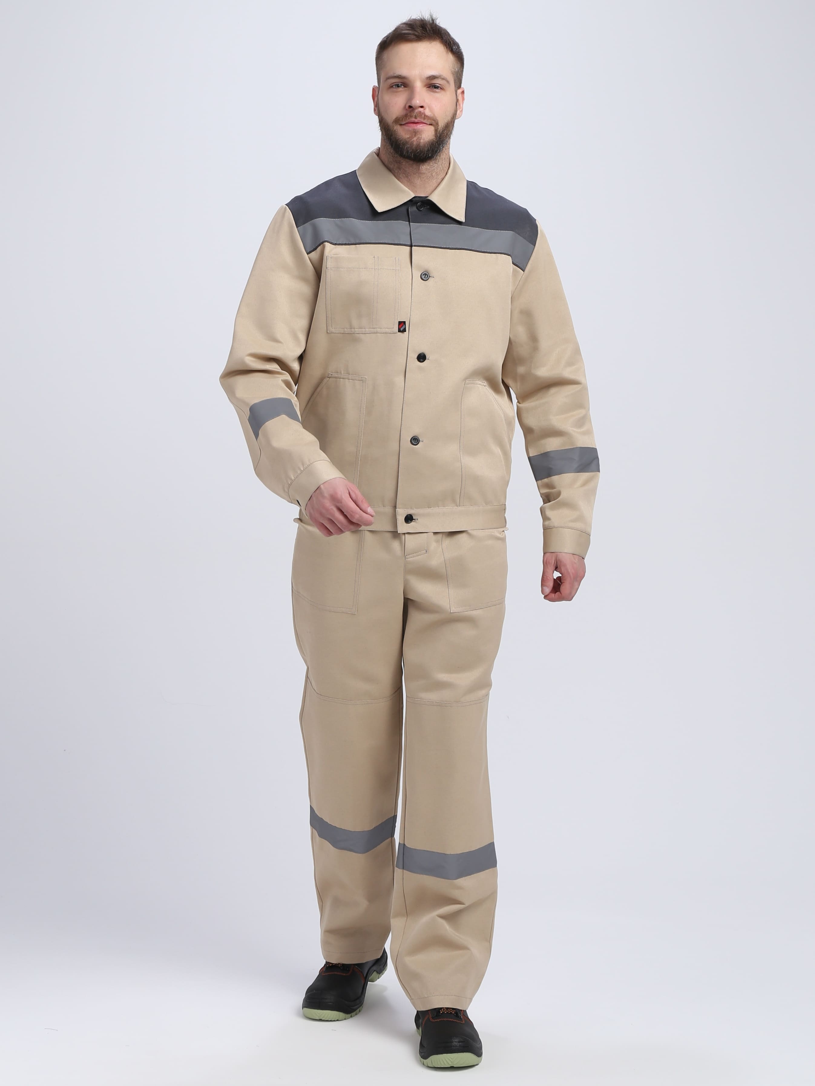Костюм Лигор-1 СОП (тк.Смесовая,210) брюки, бежевый/т.серый