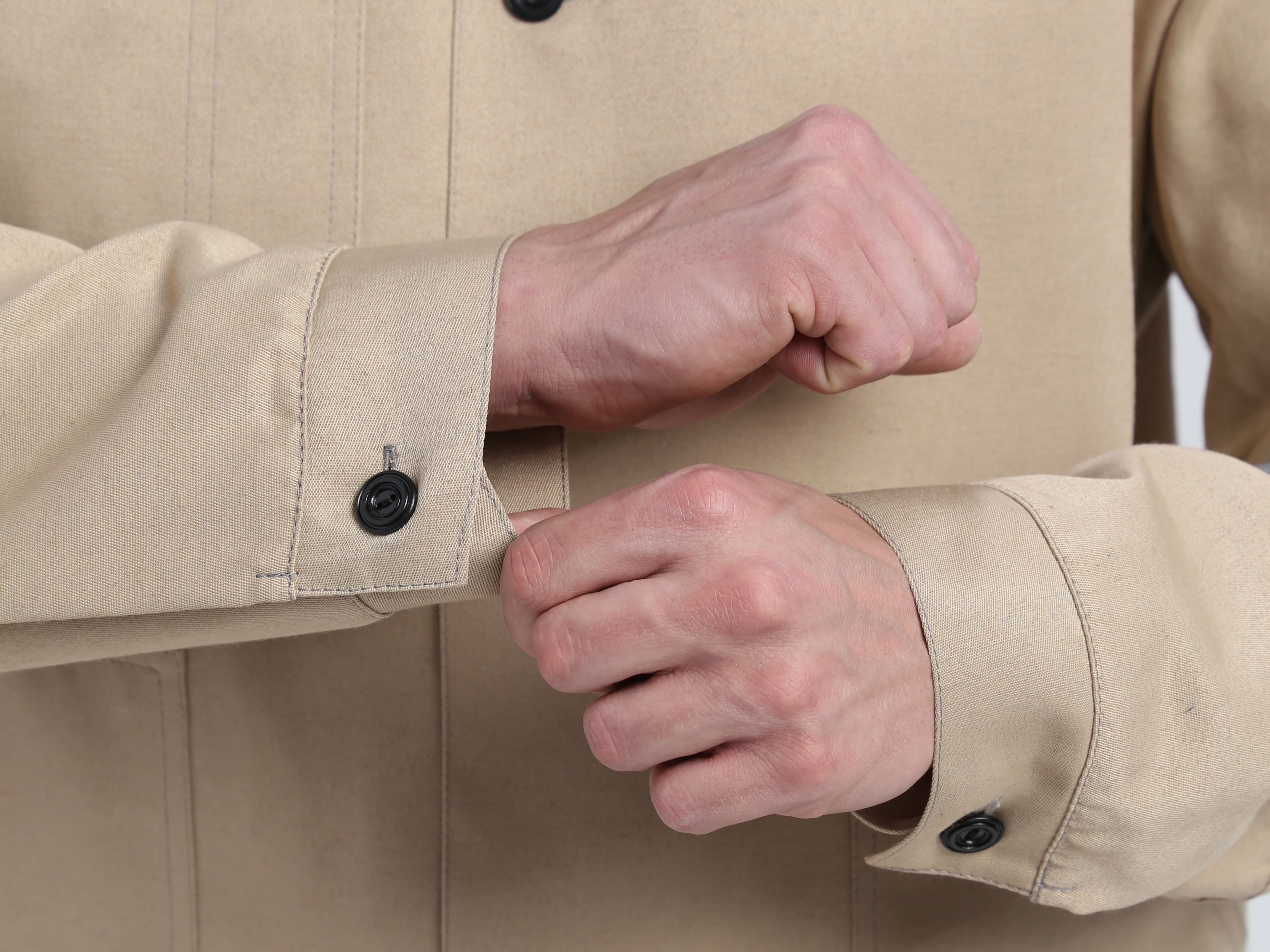 - Прямой силуэт с центральной застежкой на пять петель и пуговиц для надежной фиксации