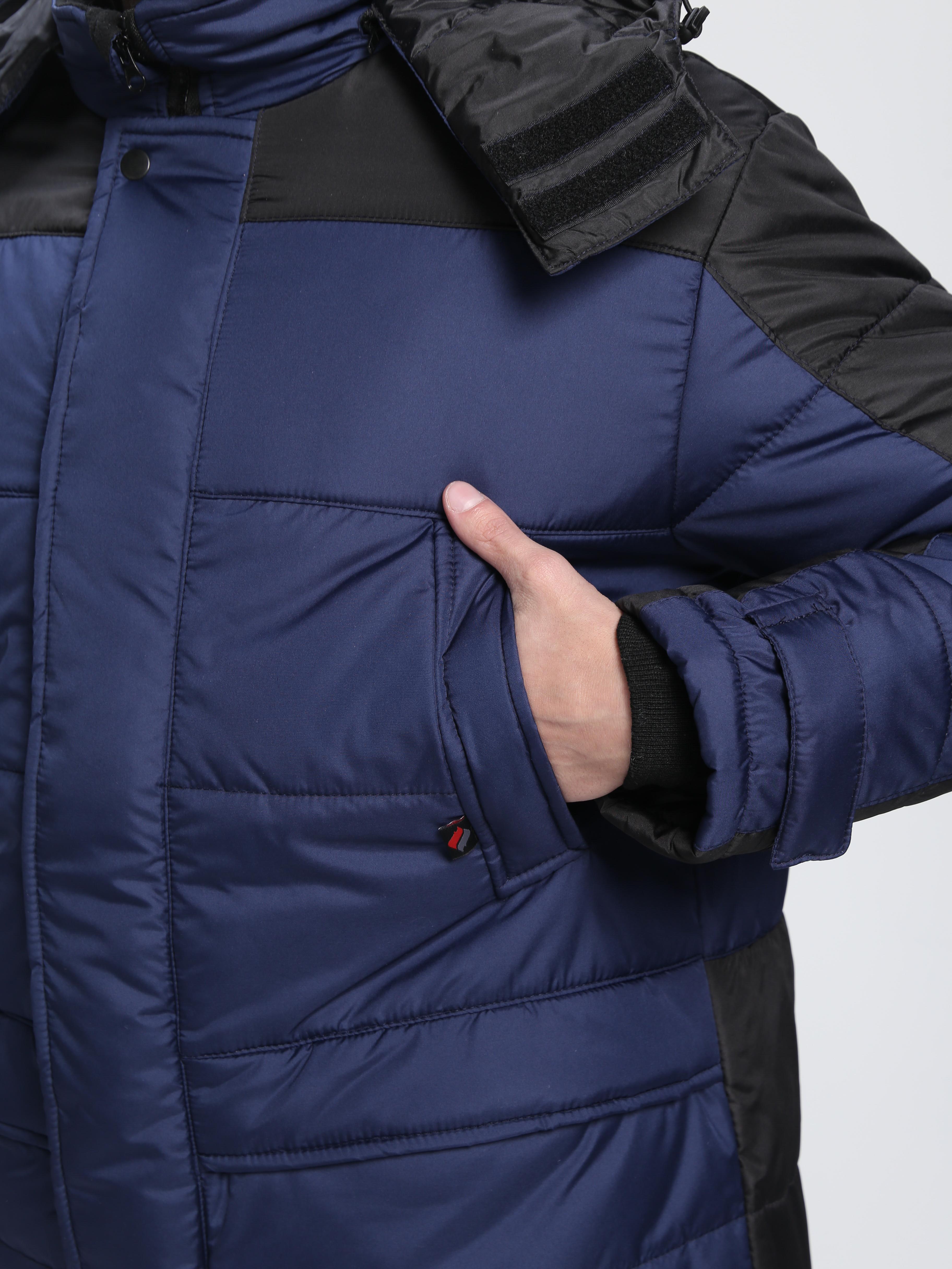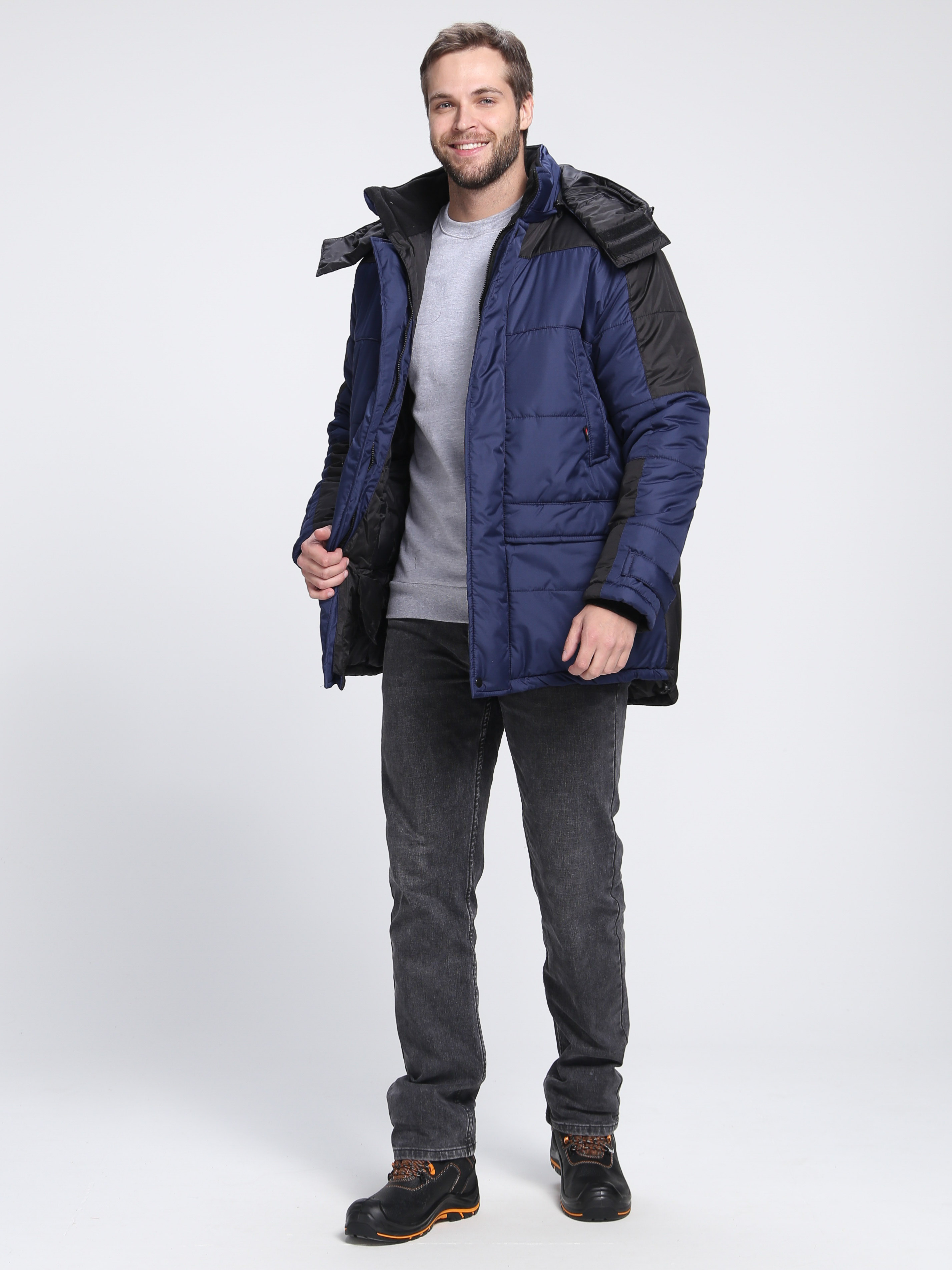 Мужская зимняя куртка «Европа» предназначена для комфортной работы при низких температурных режимах. Куртка рабочая зимняя замечательно садится по фигуре и не пропускает холод: низ куртки утягивается эластичным шнуром, на рукавах предусмотрены трикотажные манжеты, удлиненная фигурная спинка закрывает поясницу. Спецодежда производится из ткани с влагоотталкивающей пропиткой, благодаря чему отлично защищает от осадков. Плотный слой утеплителя и ветрозащитная планка на кнопках надежно сохраняют тепло, а воротник-стойка с нижним воротником из флиса укрывают шею. Объемный утепленный капюшон закрывает голову, регулируется шнуром по лицевому вырезу, может отстегиваться. Для хранения документов предусмотрен нагрудный карман на молнии формата А4, в дополнительных боковых карманах удобно хранить личные вещи.