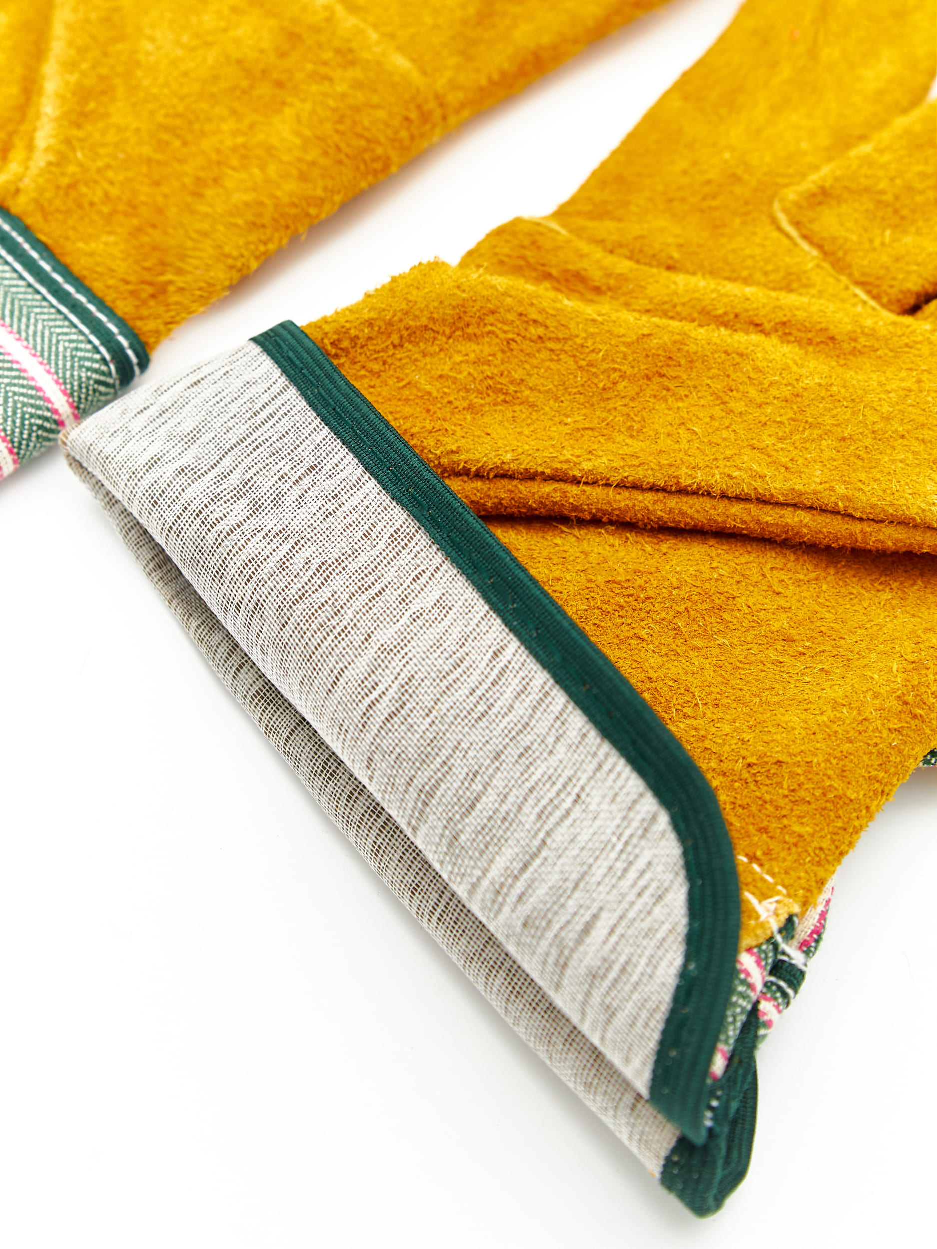 Перчатки спилковые для защиты от механических воздействий, комбинированные, х/б ткань со спилком, крага - х/б. Спилок КРС, сорт В (1,2+/– 0,2 мм), желтого цвета (2й и 3й слой спилка).