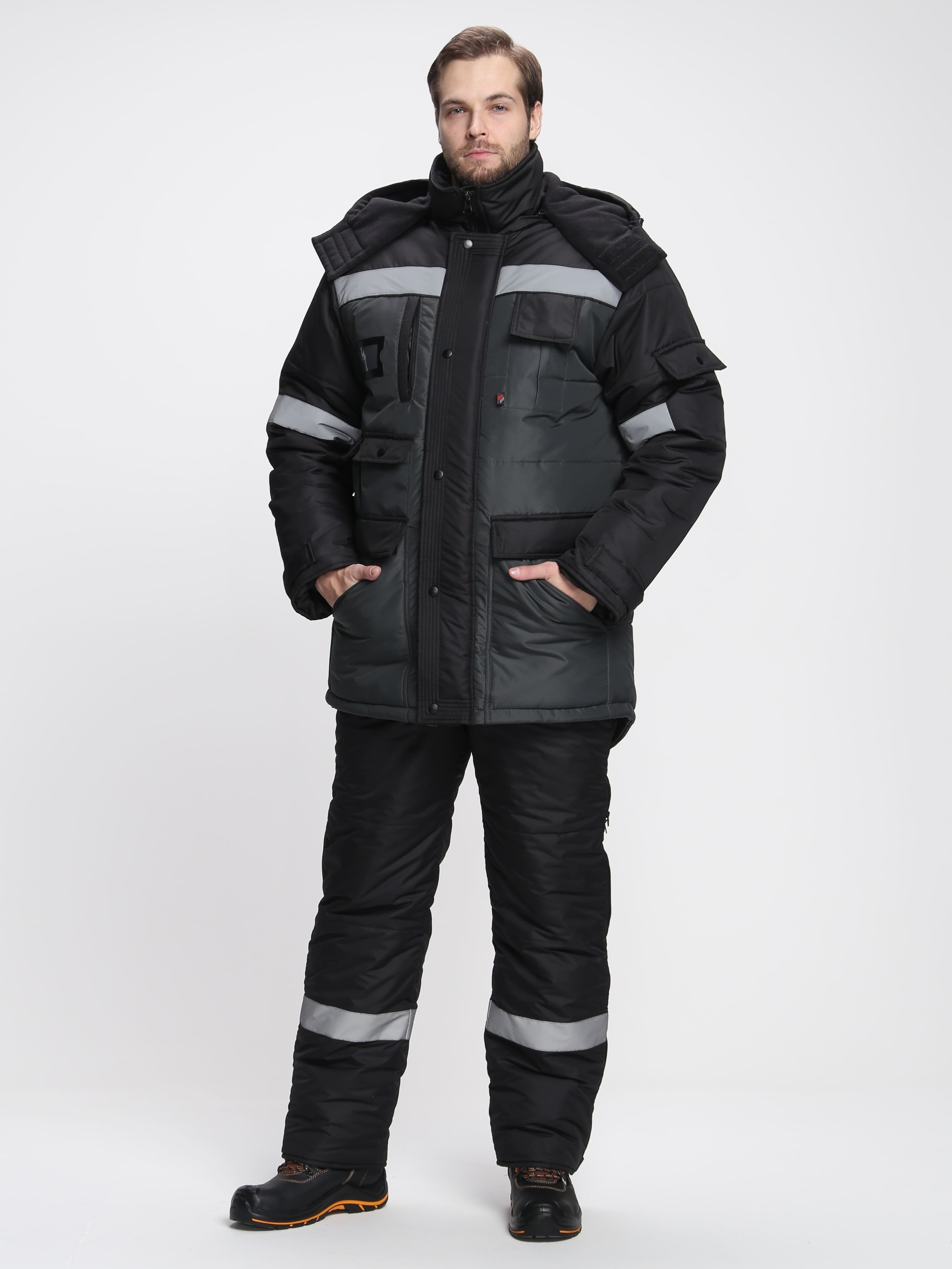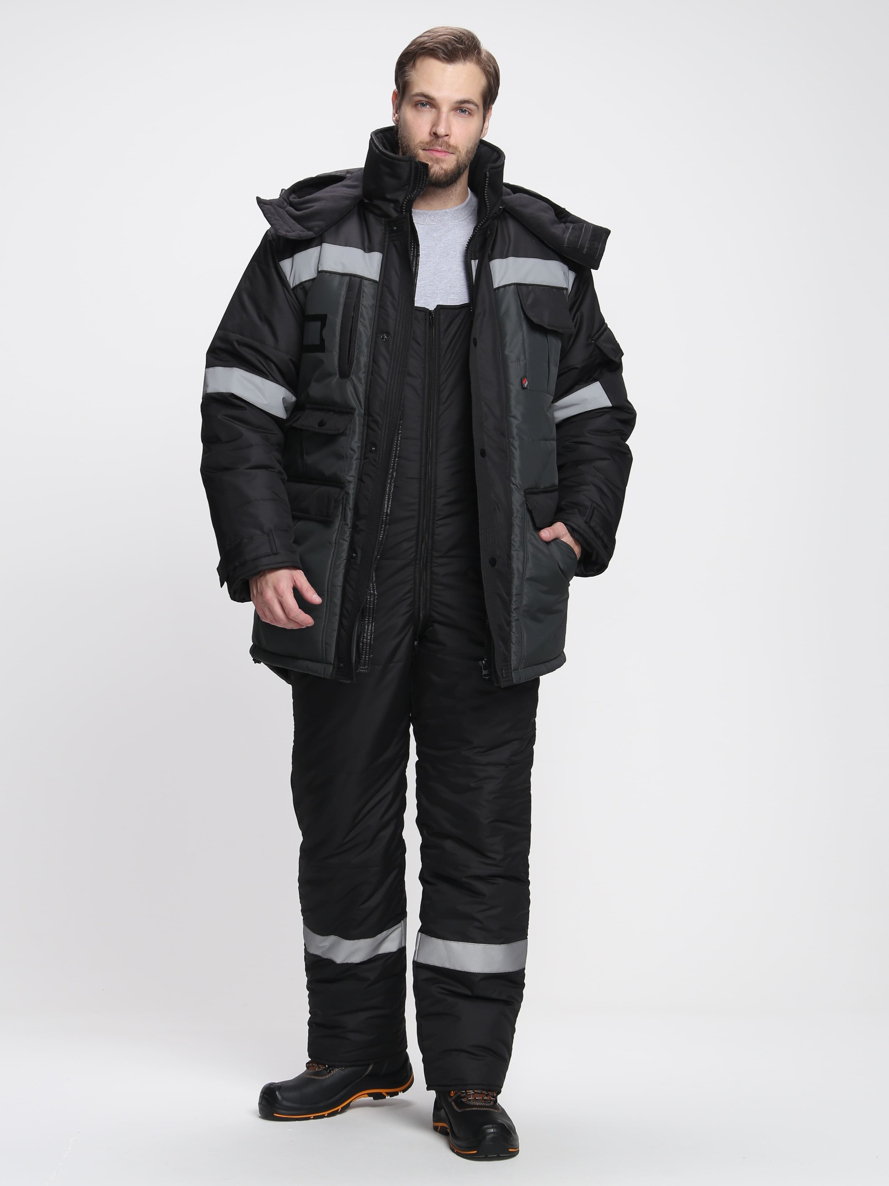 Костюм зимний Беркорт-2 СОП К. (тк.Таслан,135) п/к, черный/т.серый