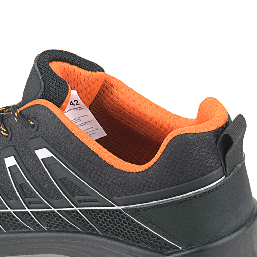 Кроссовки из серии Sport произведены из современных обувных материалов на композитном подноске ударной прочностью 200Дж. Верх обуви - прочный текстильный материал из полиэстера с водоотталкивающей пропиткой, усиленный дополнительным рельефным покрытием TPU с оригинальным дизайном. Рельефное покрытие обеспечивает дополнительную боковую поддержку стопы и повышает прочность материала верха к механическим воздействиям. Подкладка из воздухопроницаемого трикотажа 3D-mesh обеспечивает комфортную носку. Светоотражающие элементы обеспечивают безопасность в темное время суток. Подошва двухслойная, полиуретан и термополиуретан, обеспечивает легкость обуви и хорошие амортизационные свойства. Современный дизайн полуботинка актуален не только в рабочей, но и в повседневной обуви.