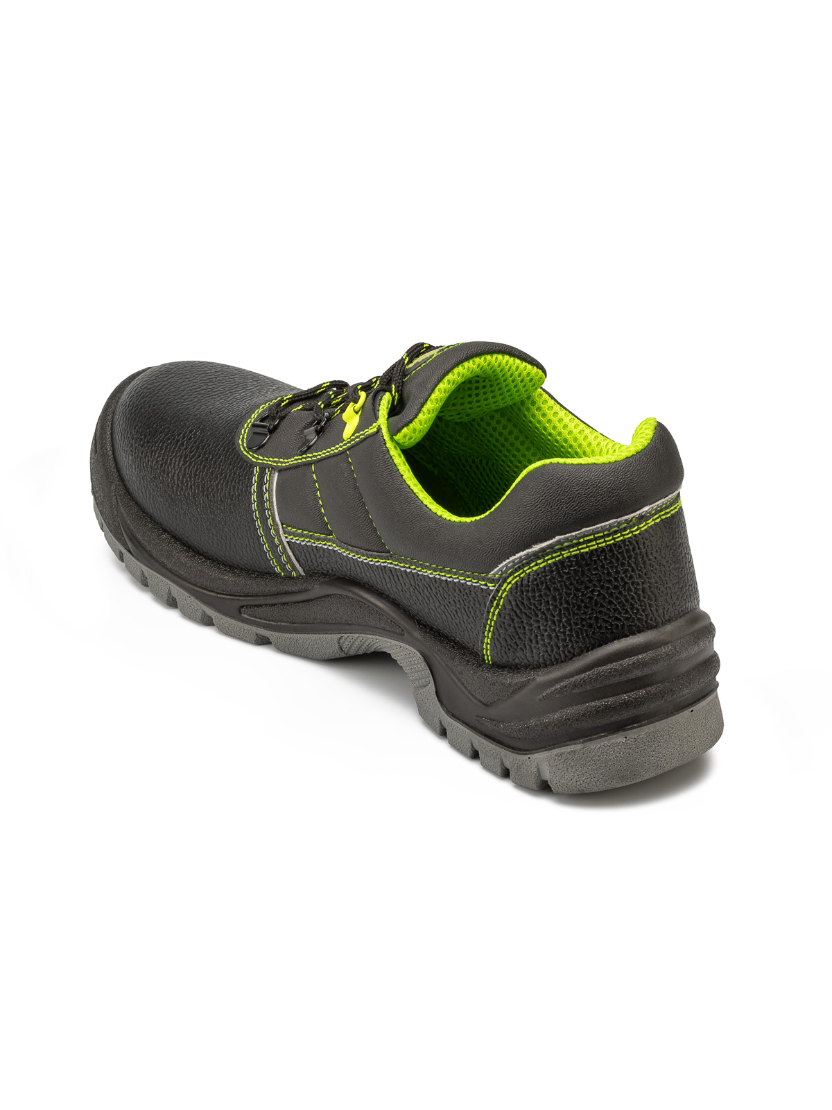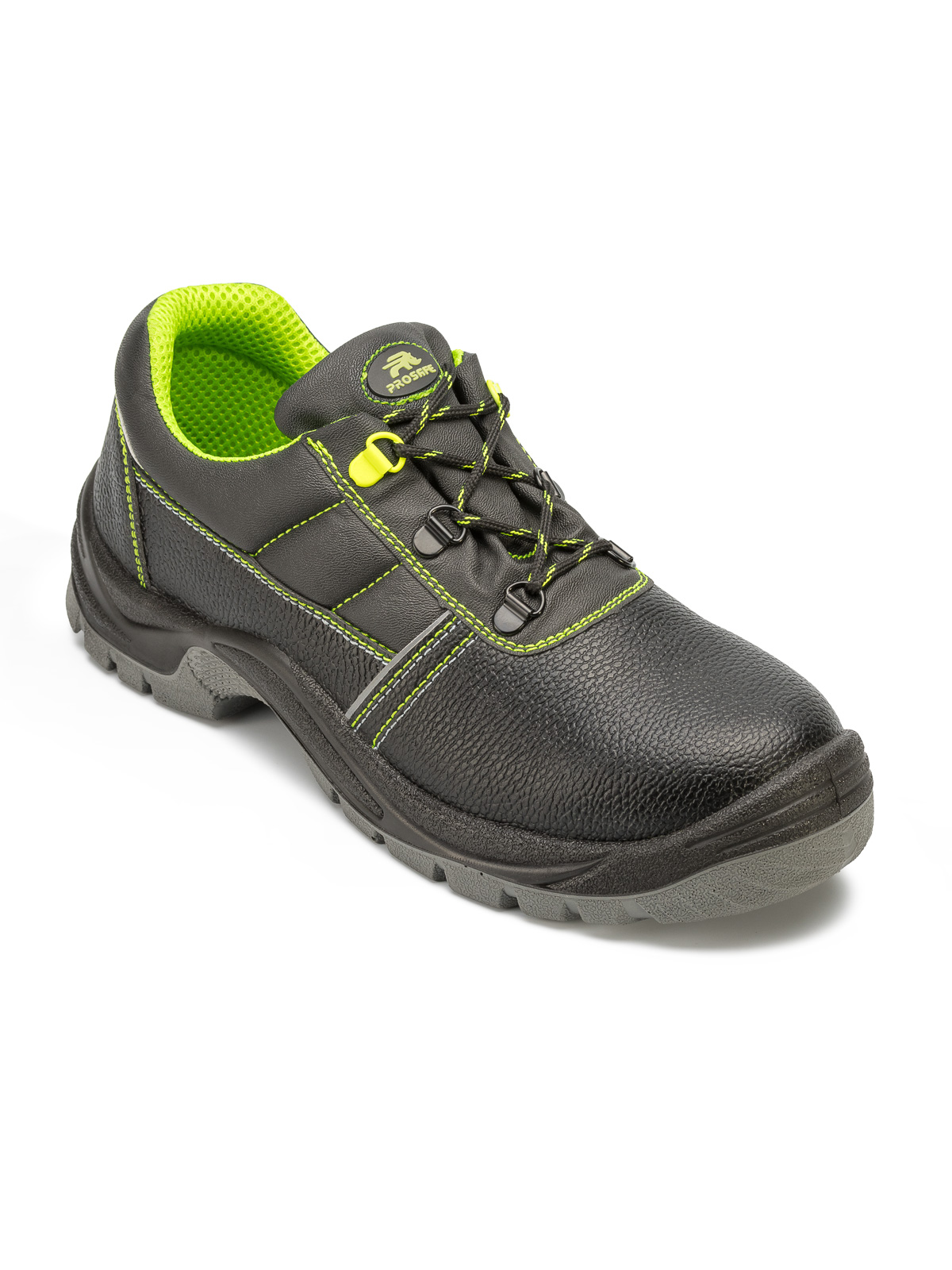 Кожаные полуботинки Prosafe серии Neon Lime c фигурной отрезной задинкой, мягким кантом и глухим клапаном предназначены для защиты ног от общих производственных загрязнений в отапливаемых помещениях и на открытом водухе в летний период. Текстильная сетчатая подкладка и стелька создают комфортные условия носки в течении рабочей смены. Шнуровка, проходящая через металлические петли, обеспечивает комфортную адаптивную посадку при длительном ношении. Светоотражающие элементы повышают видимость работников в темное время суток, а также на неосвещенной территории. Подошва- двухслойная, маслобензостойкая, литьевого метода крепления. Промежуточный слой изготовлен из ПУ с внутренней амортизирующей вставкой в пяточной части подошвы, способной гасить нагрузки при ходьбе. Нижний ходовой слой- износостойкий, термостойкий ТПУ. Глубина протектора ходового слоя обеспечивает хорошую сцепляемость с поверхностями и препятствует скольжению . Термопластичный подносок обеспечивает защиту пальцев стопы.