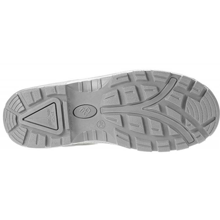 Двухслойная маслобензостойкая полиуретановая подошва литьевого метода крепления имеет вставку в пяточной части подошвы, обладающую амортизационными свойствами и способную гасить ударные нагрузки при ходьбе.