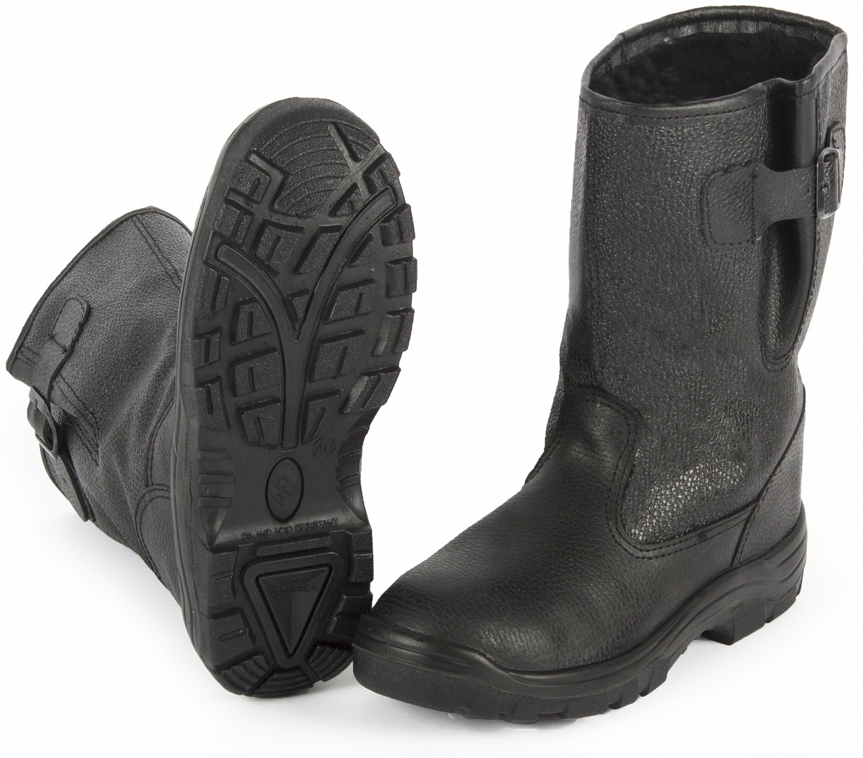 Кожаные сапоги Prosafe серии basic дополнены ремнем с металлической пряжкой для возможности регулировать и комфортно фиксировать ширину голенища.