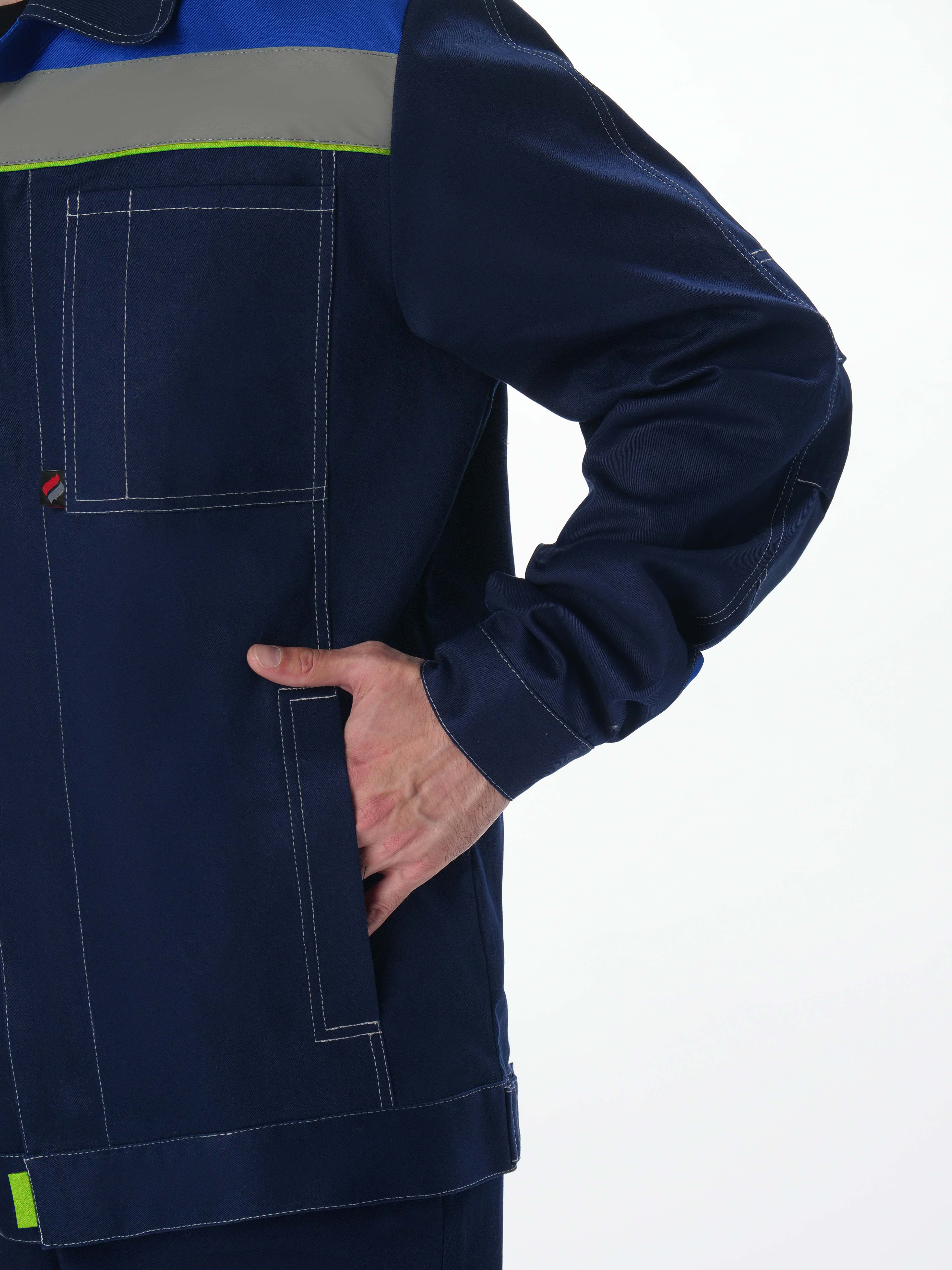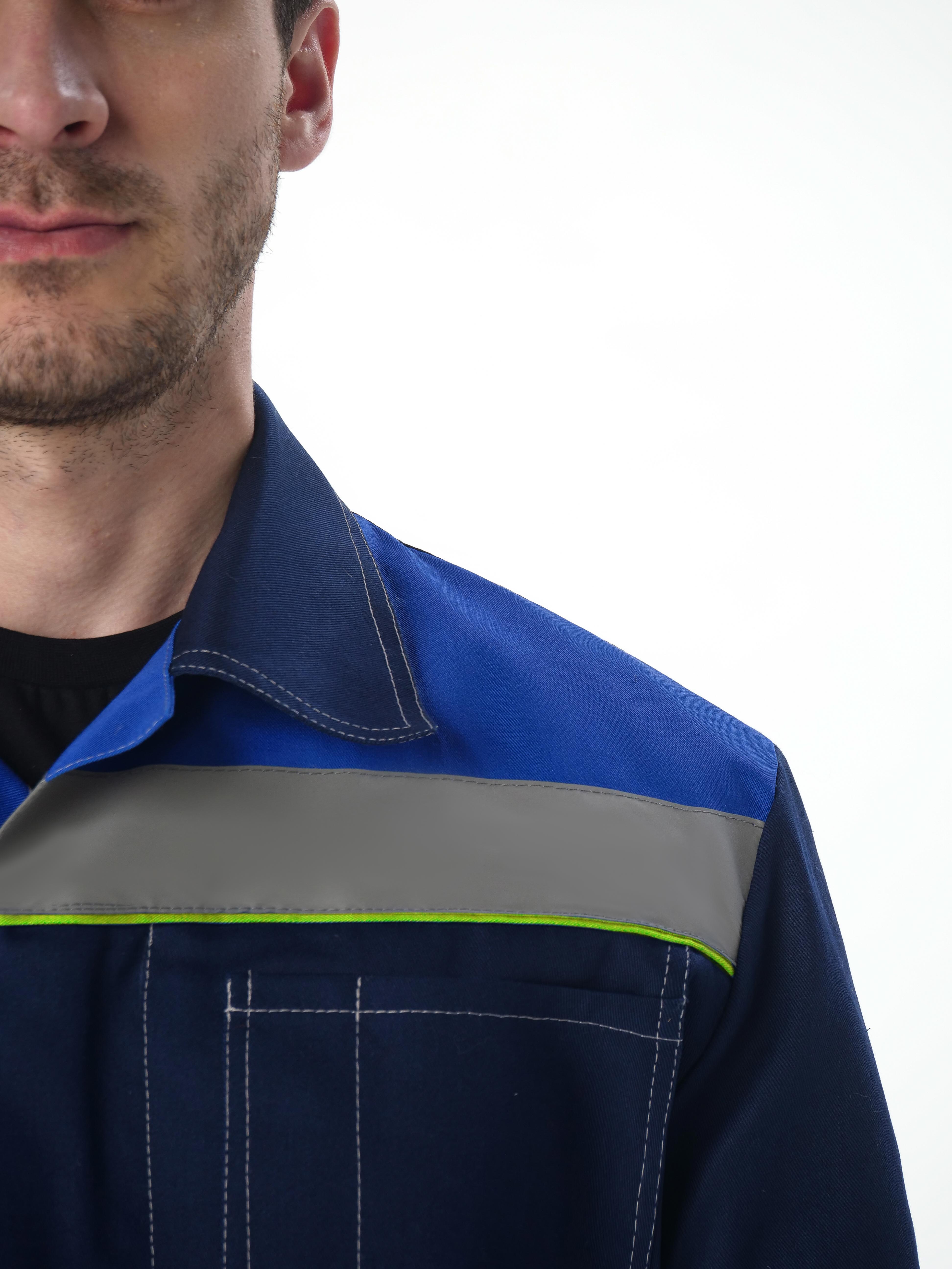 - Кокетки из отделочной ткани с контрастным кантом и светоотражающими полосами (СОП 50 мм)
