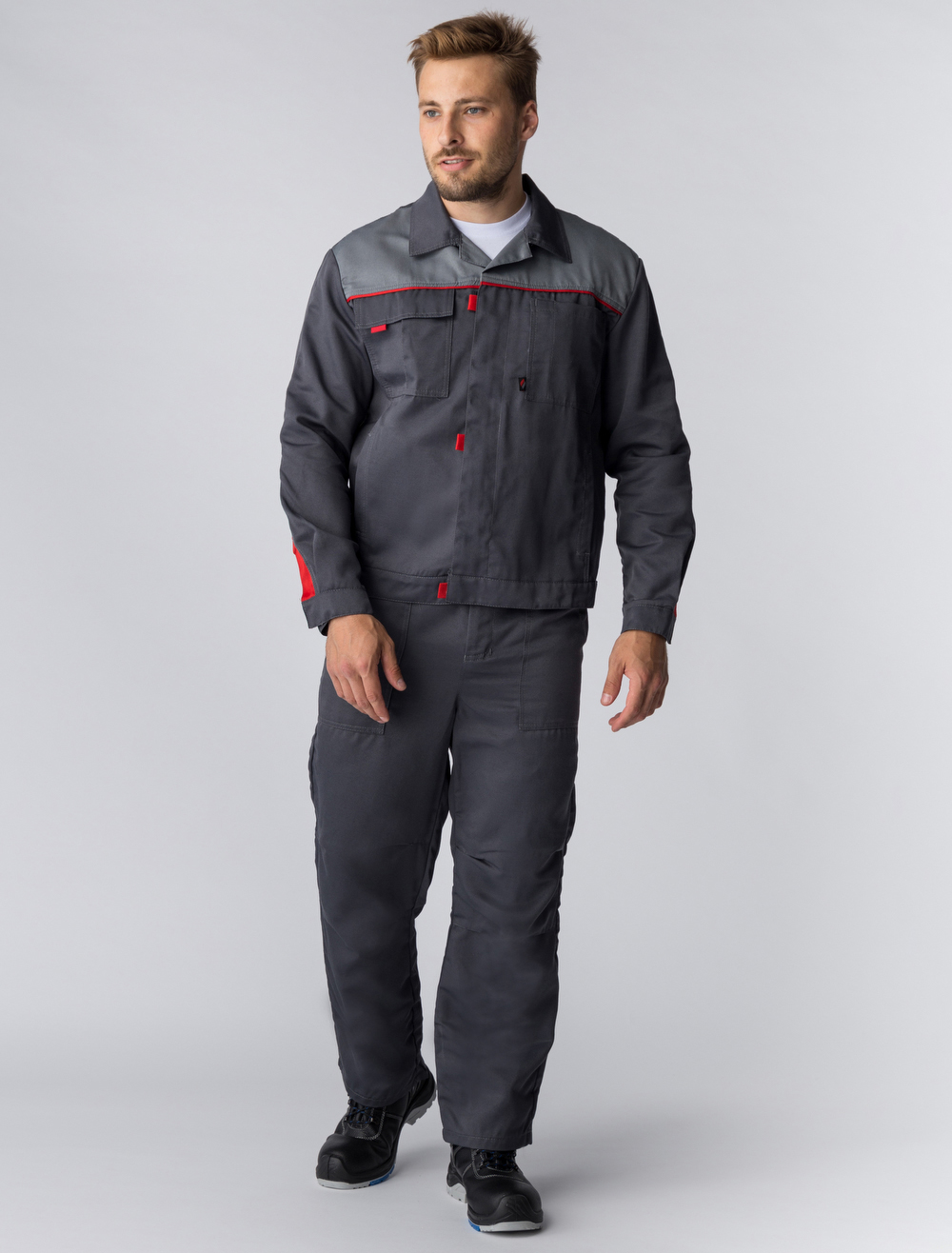 87488896 Костюм Флофт-2 СОП У. (тк.Смесовая,210) п/к, т.серый/серый/красный