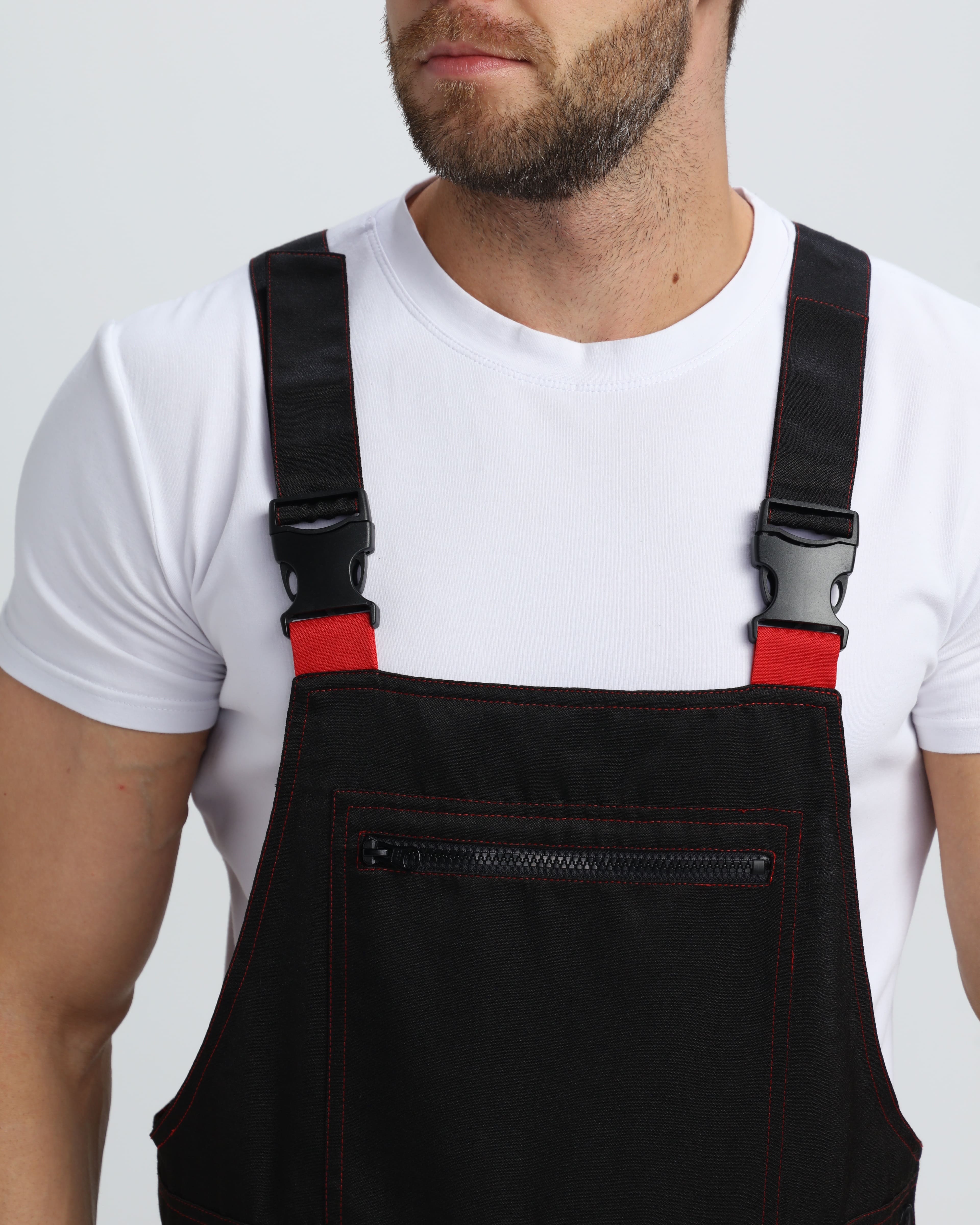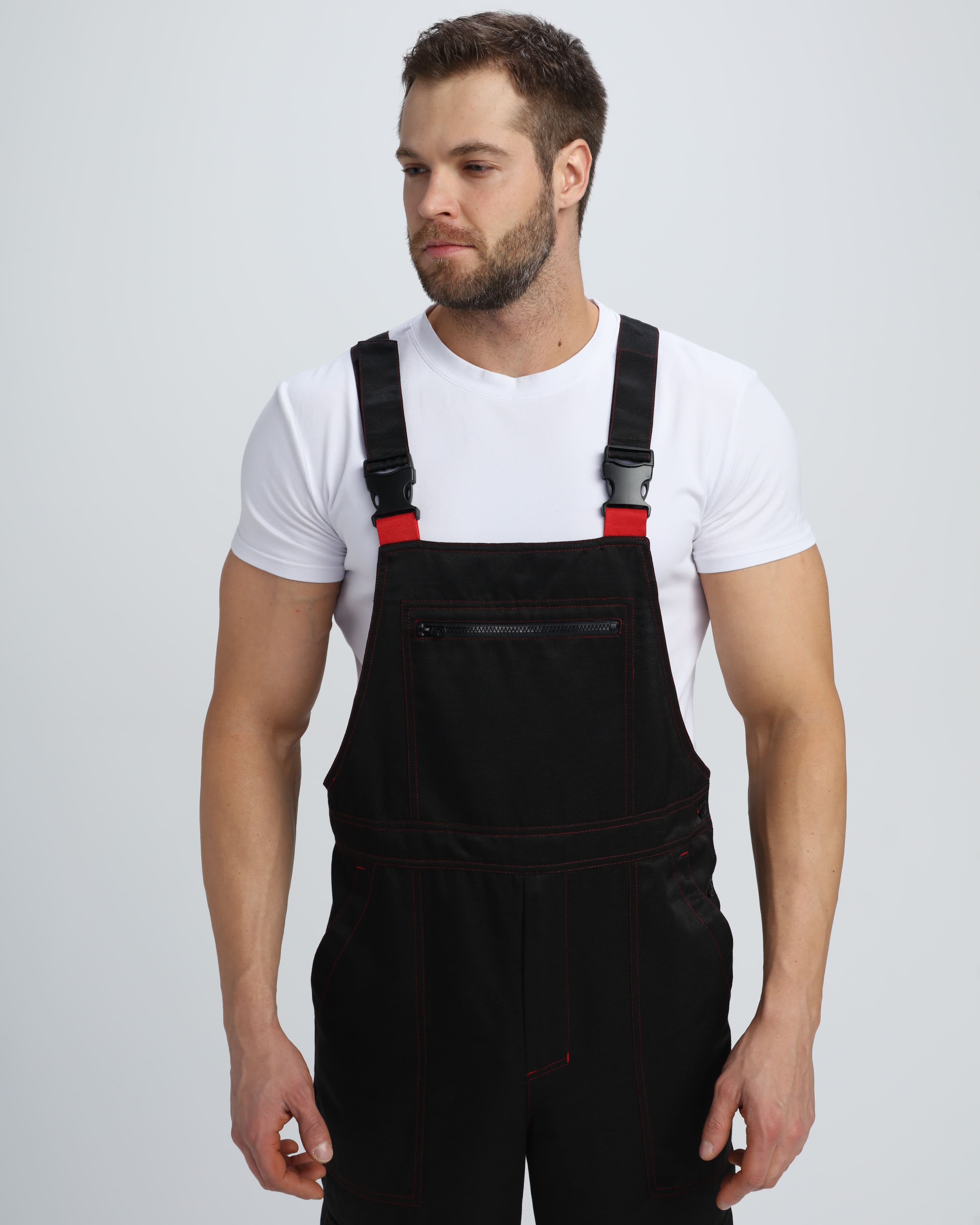 - Усиленная грудка с накладным карманом на молнии для хранения инструментов