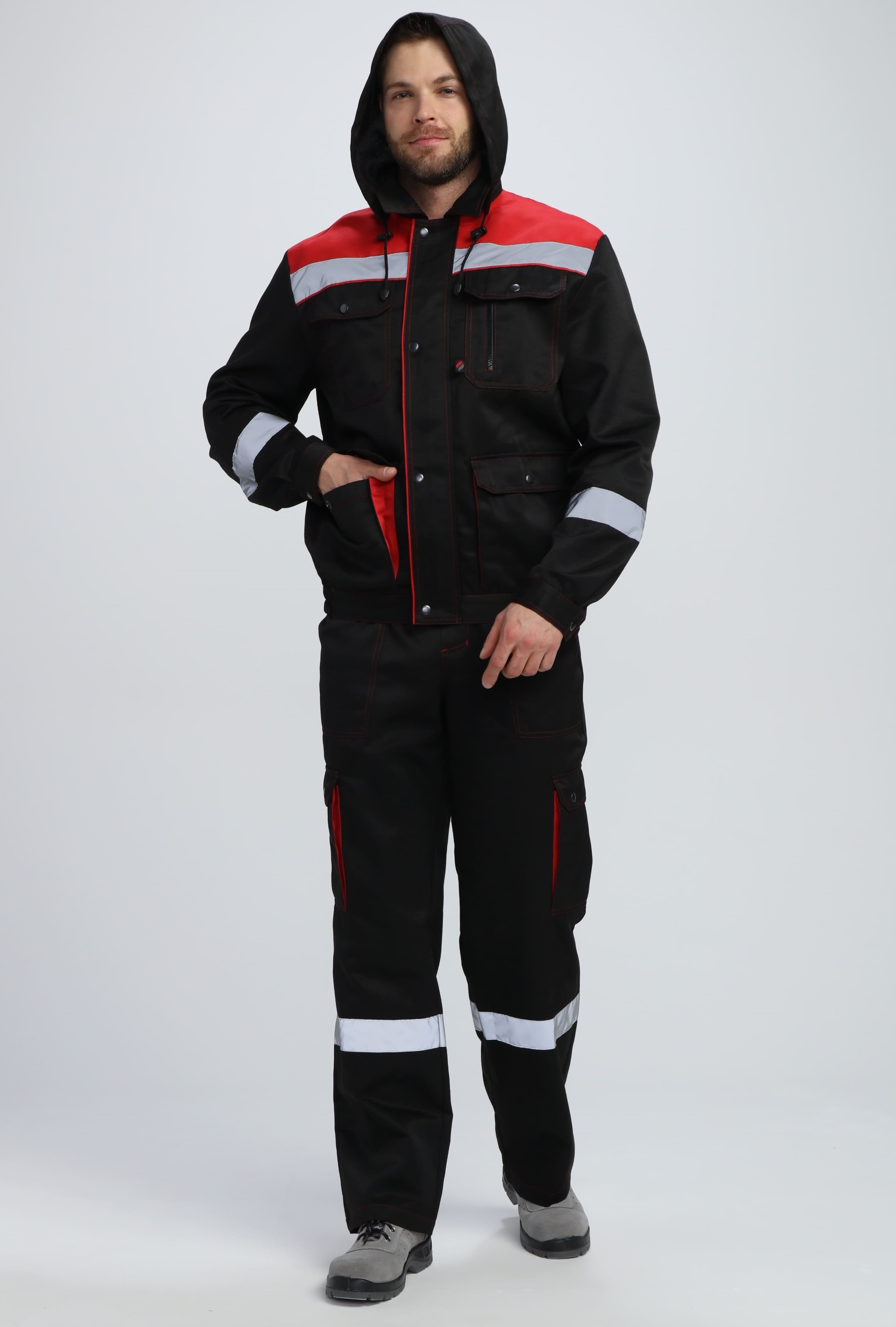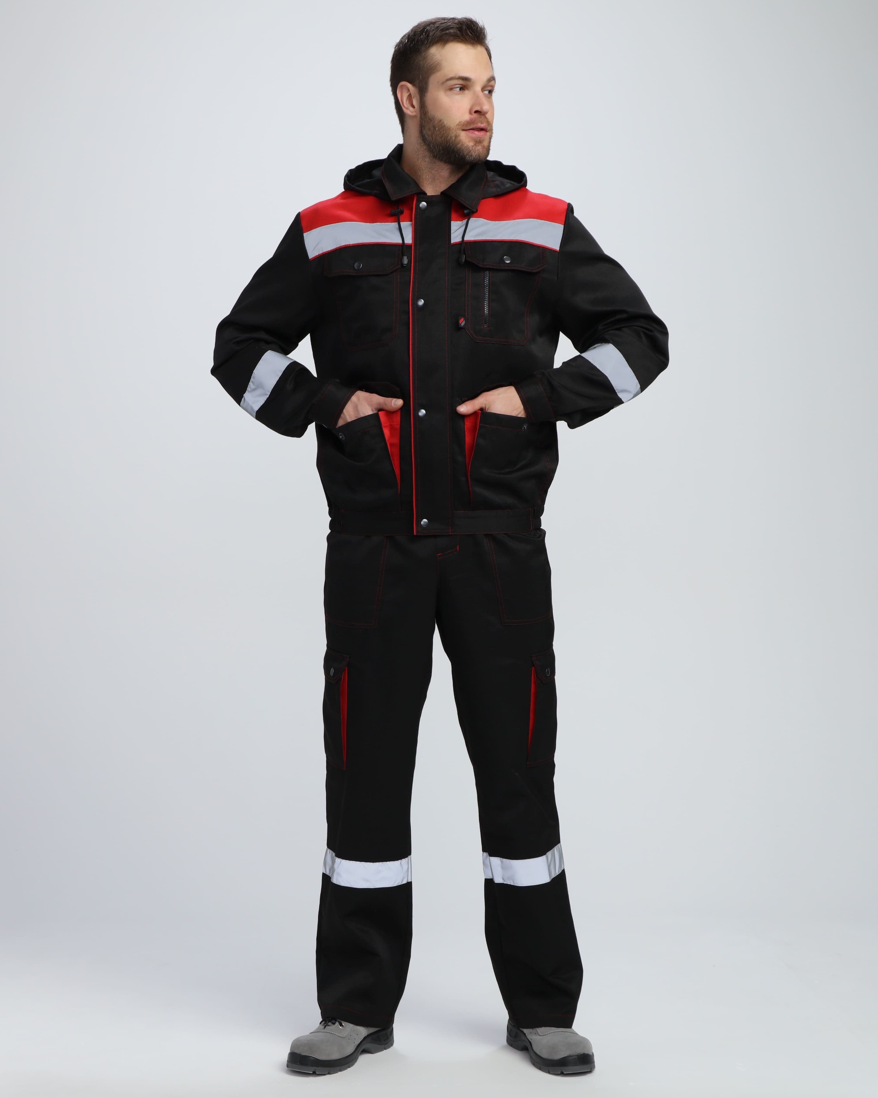 Костюм Нейч-2 СОП с капюшоном К. (тк.Смесовая,210) п/к, черный/красный