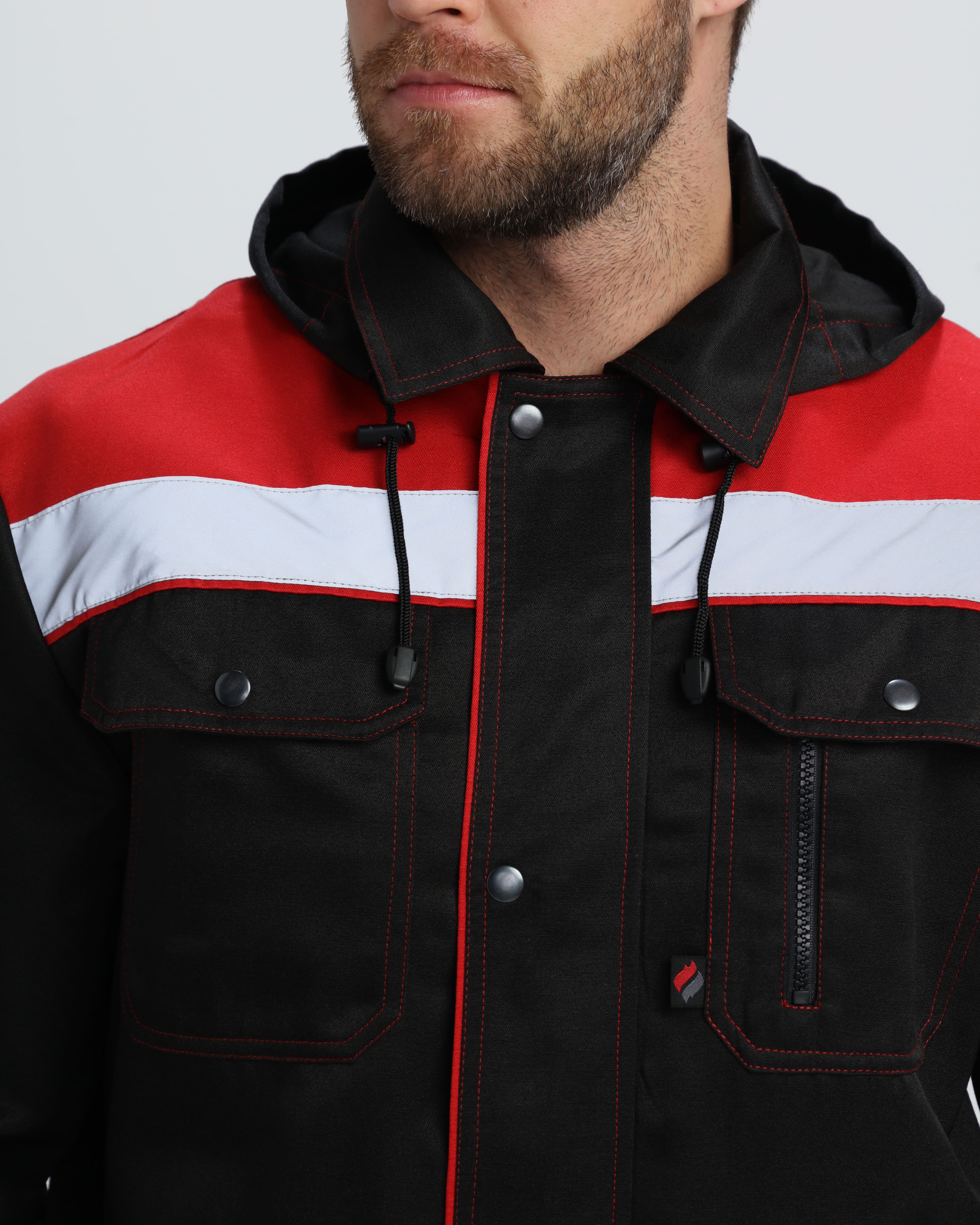 Костюм Нейч-2 СОП с капюшоном (тк.Смесовая,210) п/к, черный/красный
