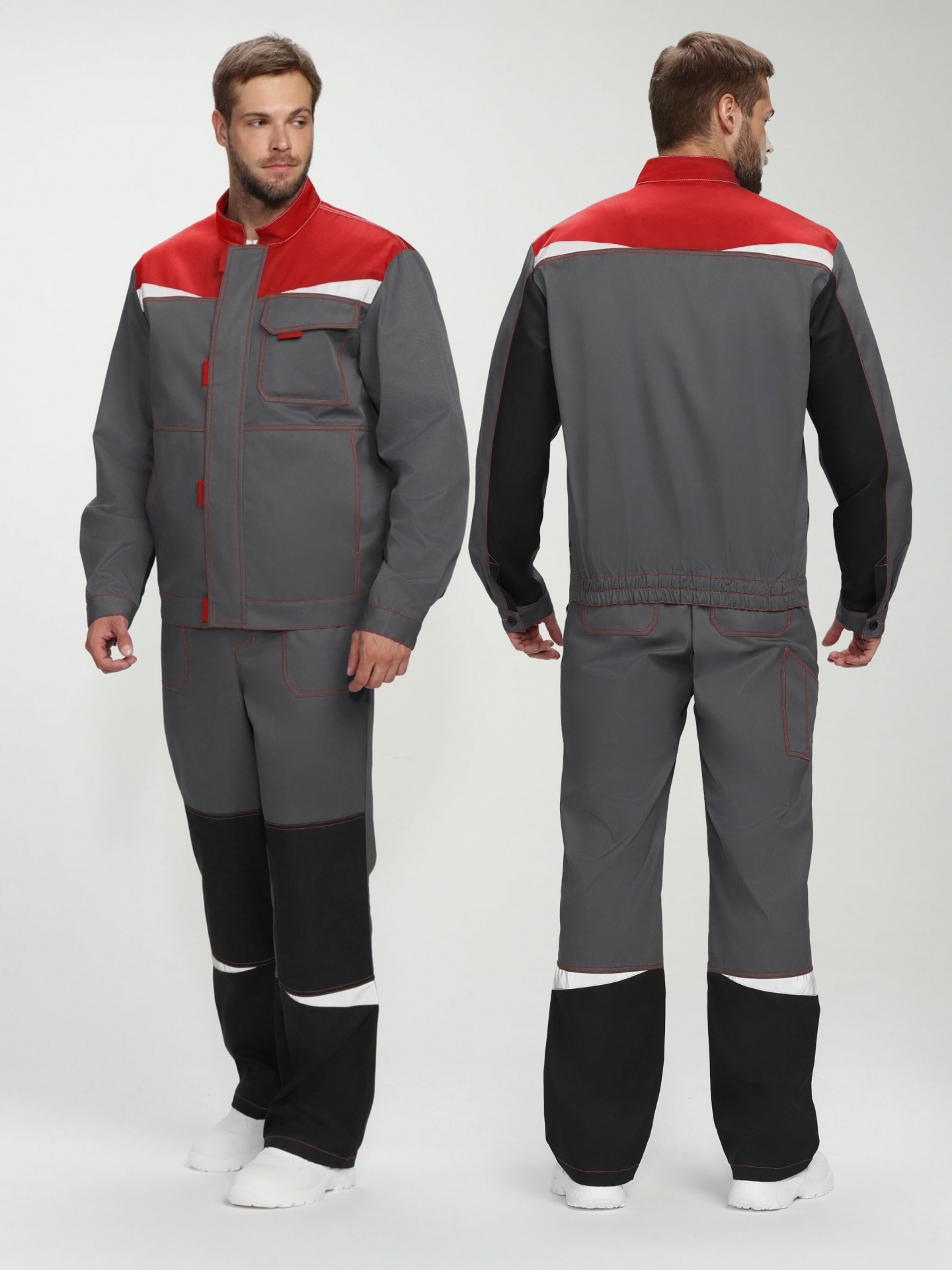 Костюм Строй-1 CH МВО (тк.Смесовая,280) брюки, т.серый/красный/черный