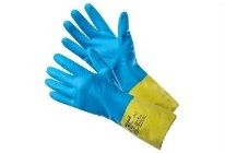 Химостойкие двухслойные (латекс/неопрен) перчатки для защиты от широкого диапазона химикатов и масел с внутренним антибактериальным хлопковым напылением.