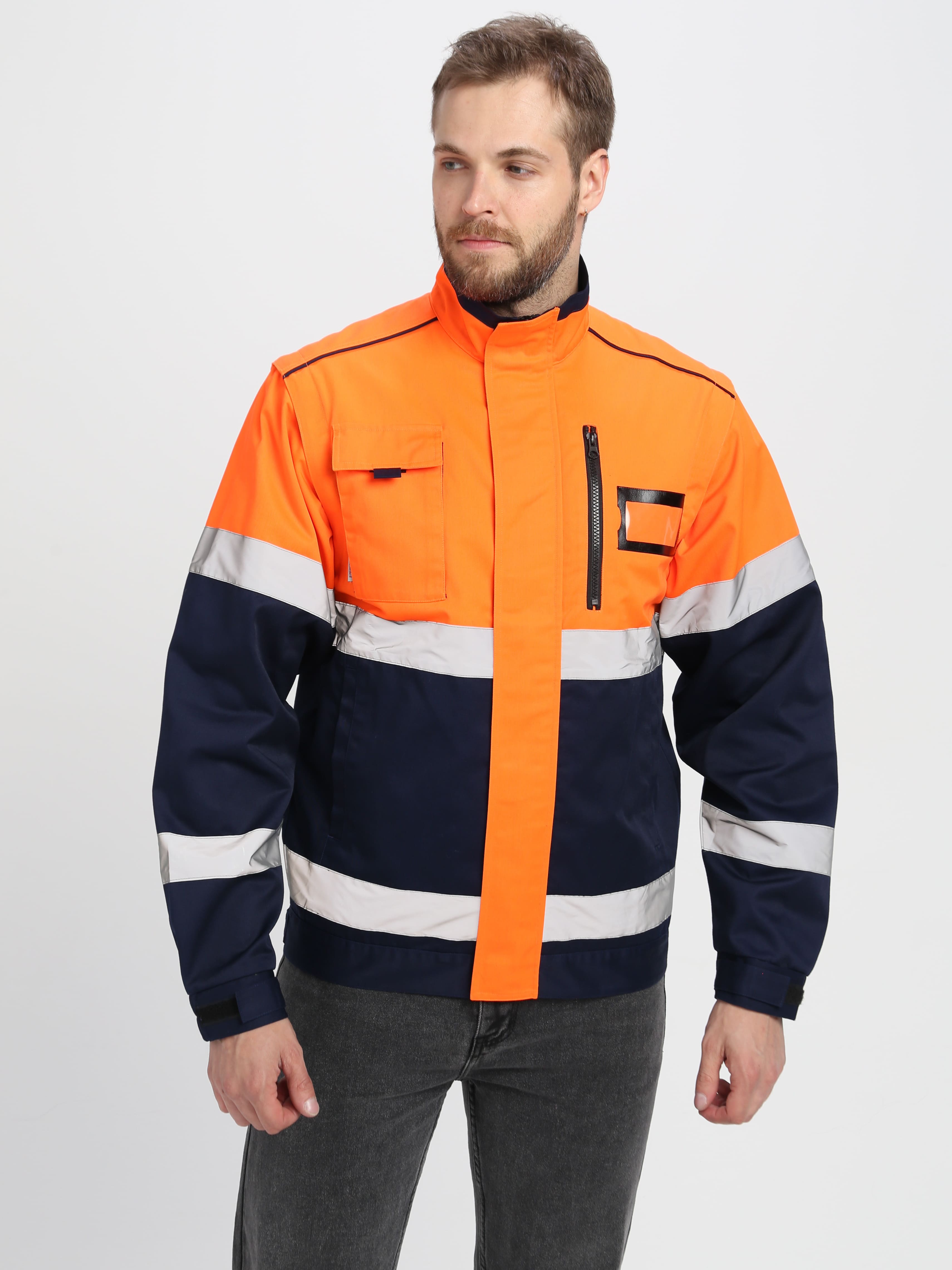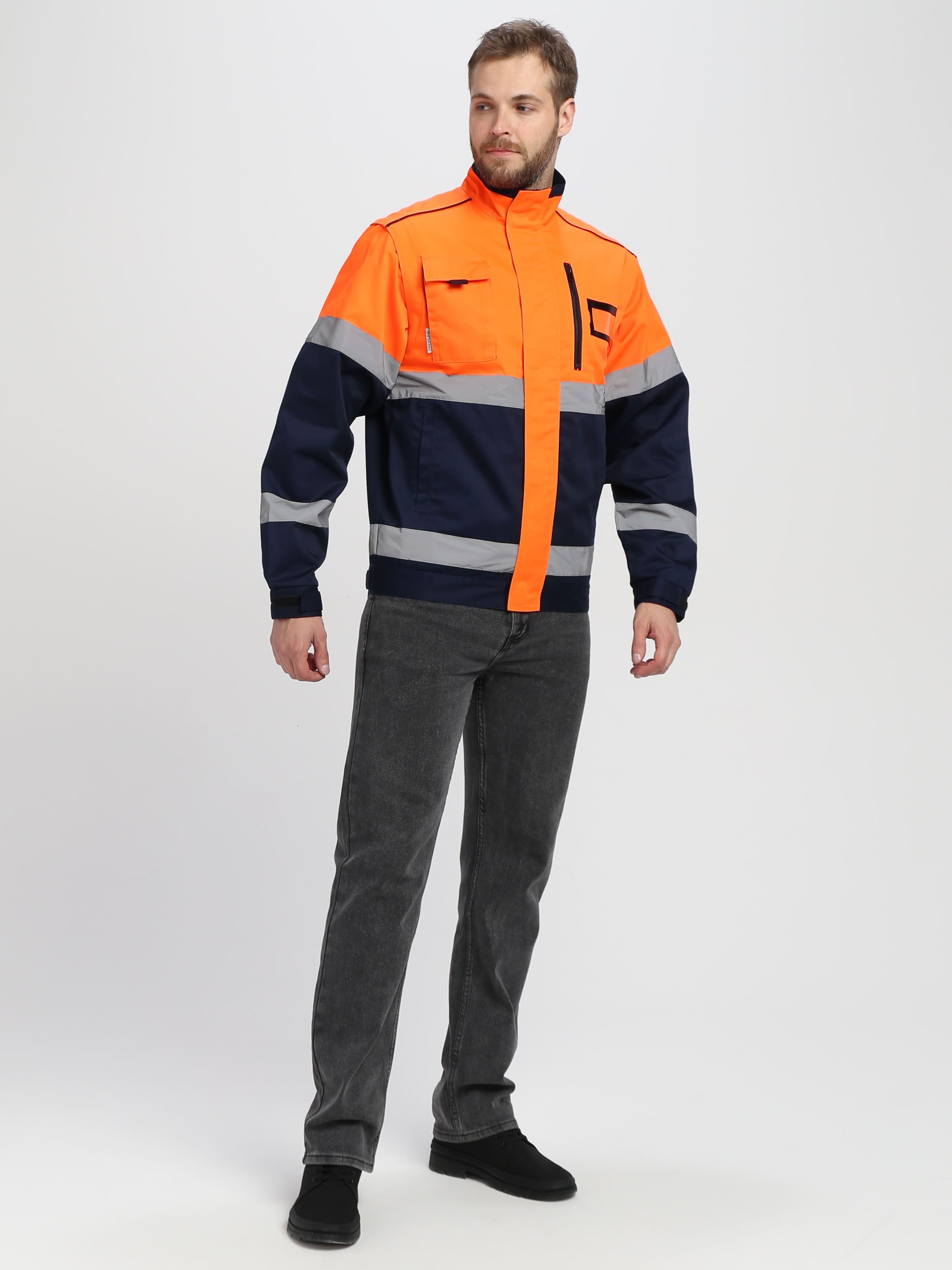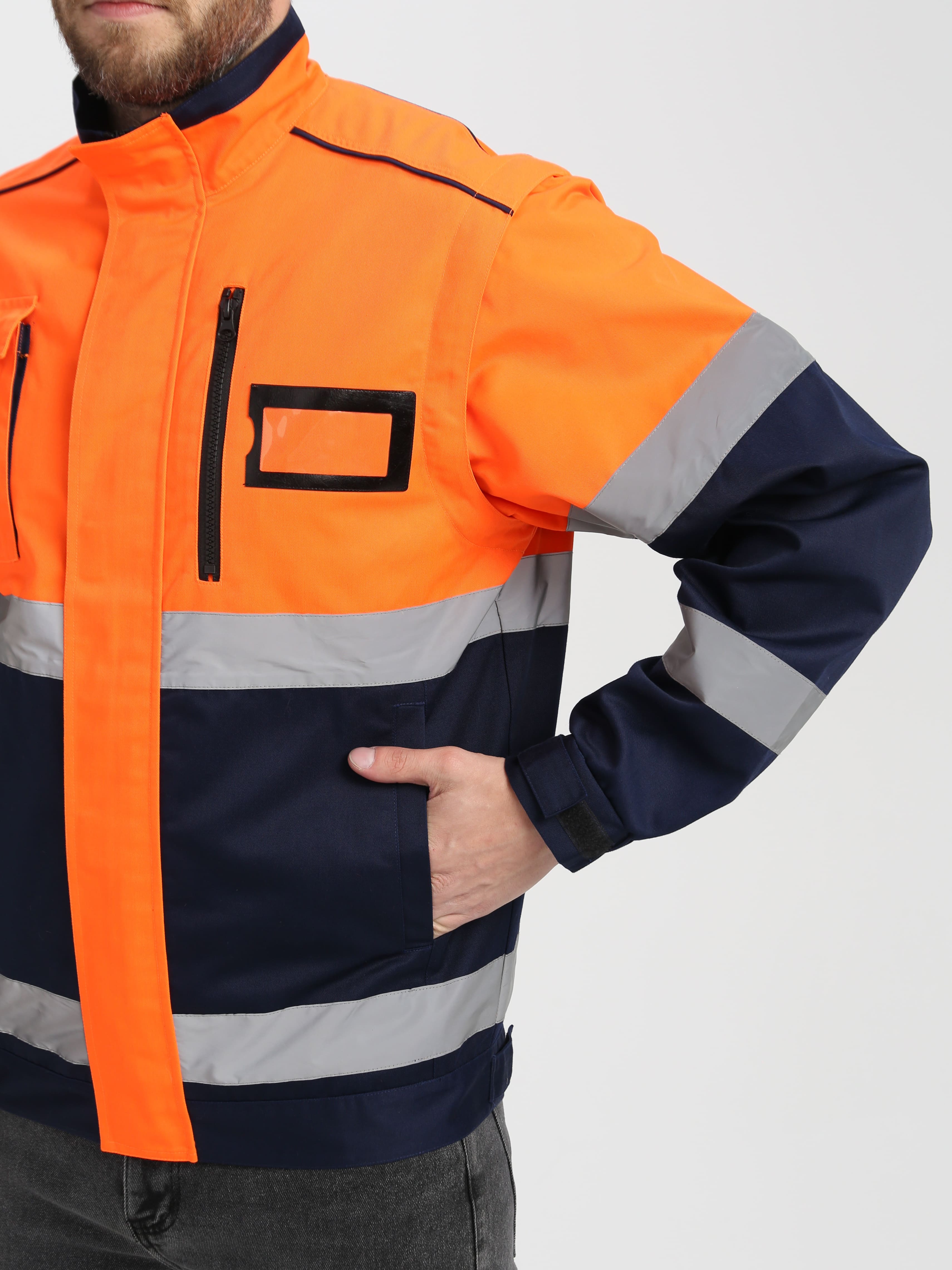 Куртка-трансформер сигнальная ProfLineSpecialist (тк.Смесовая МВО,240), оранжевый/т.синий