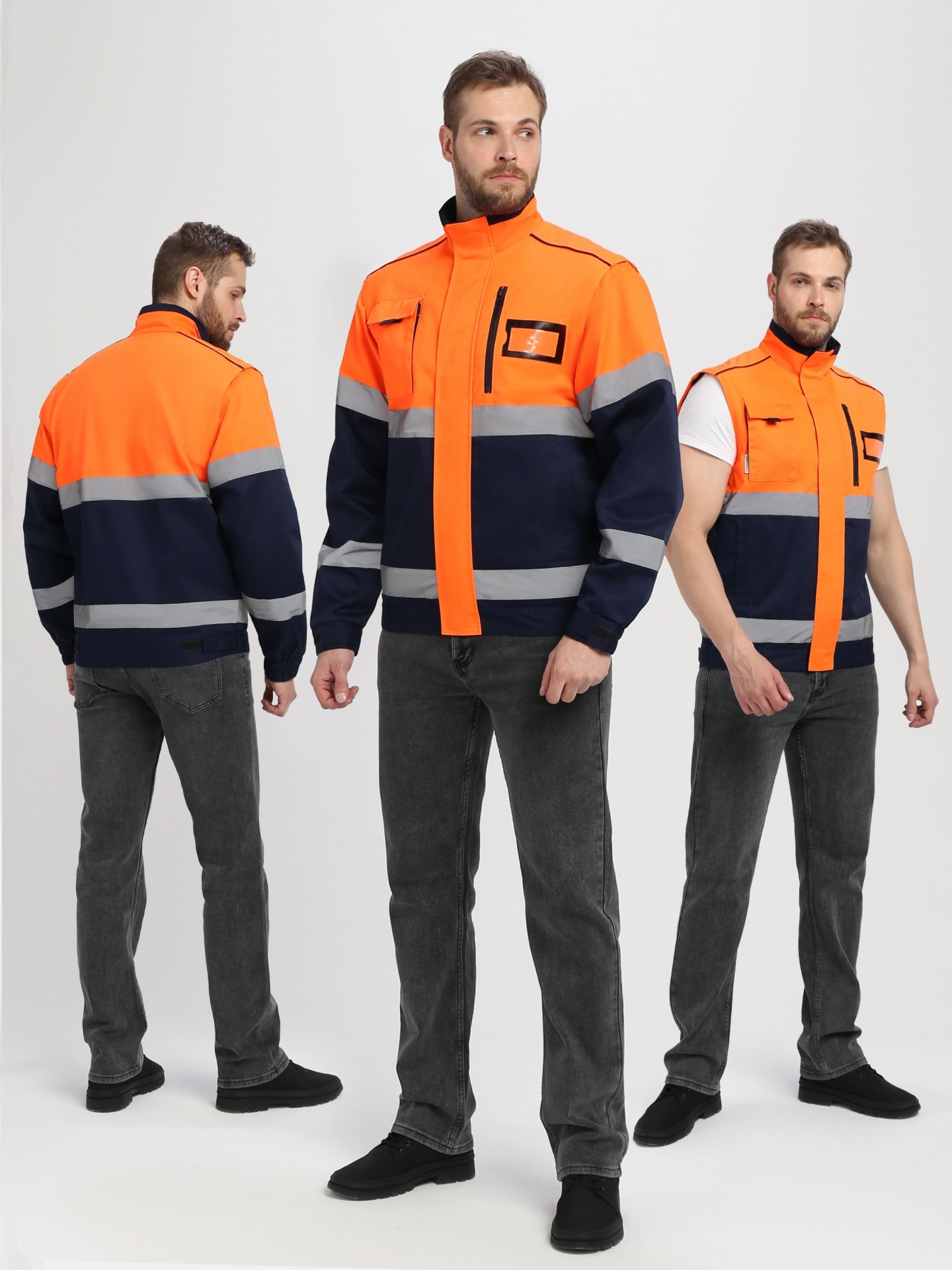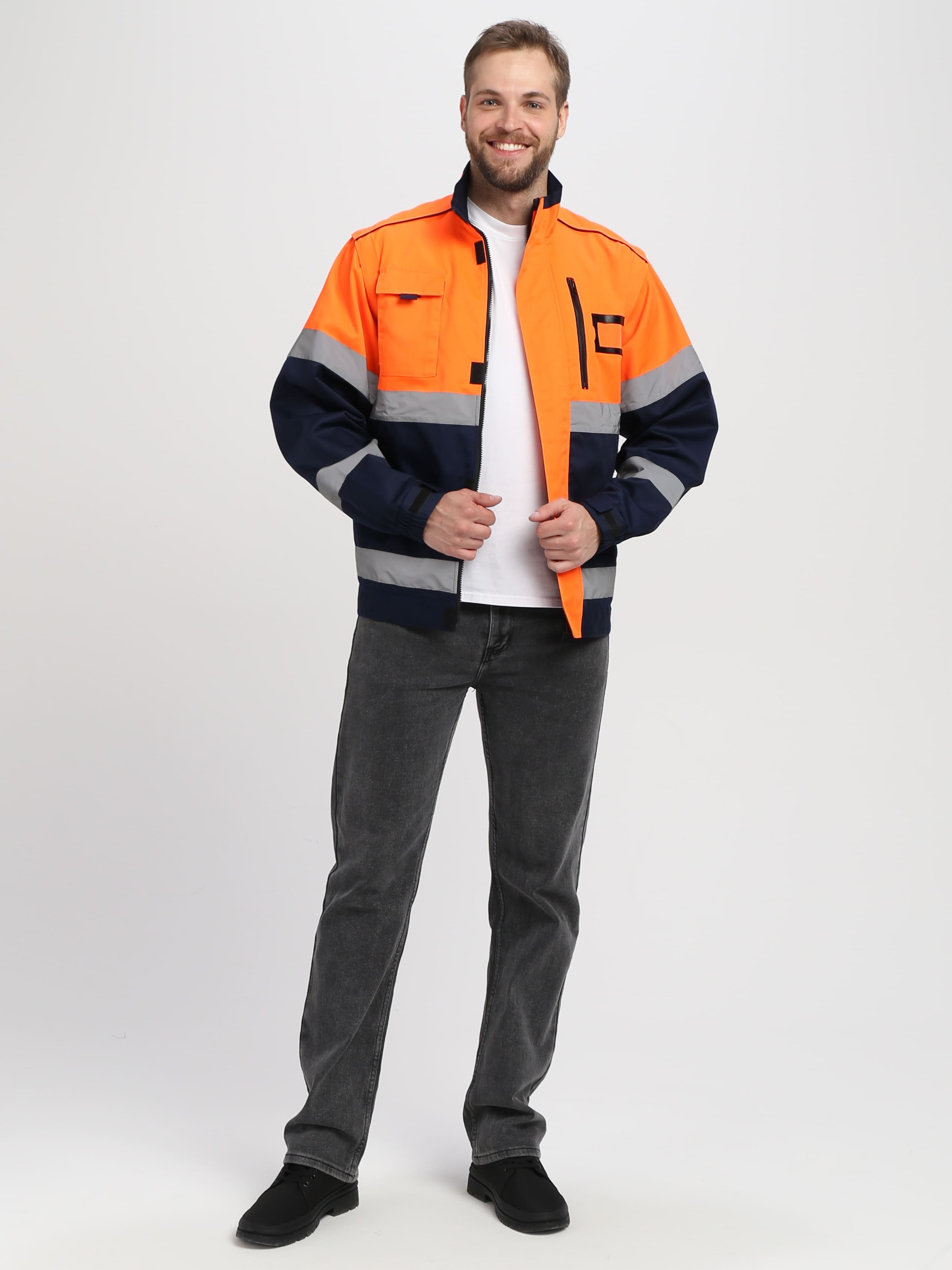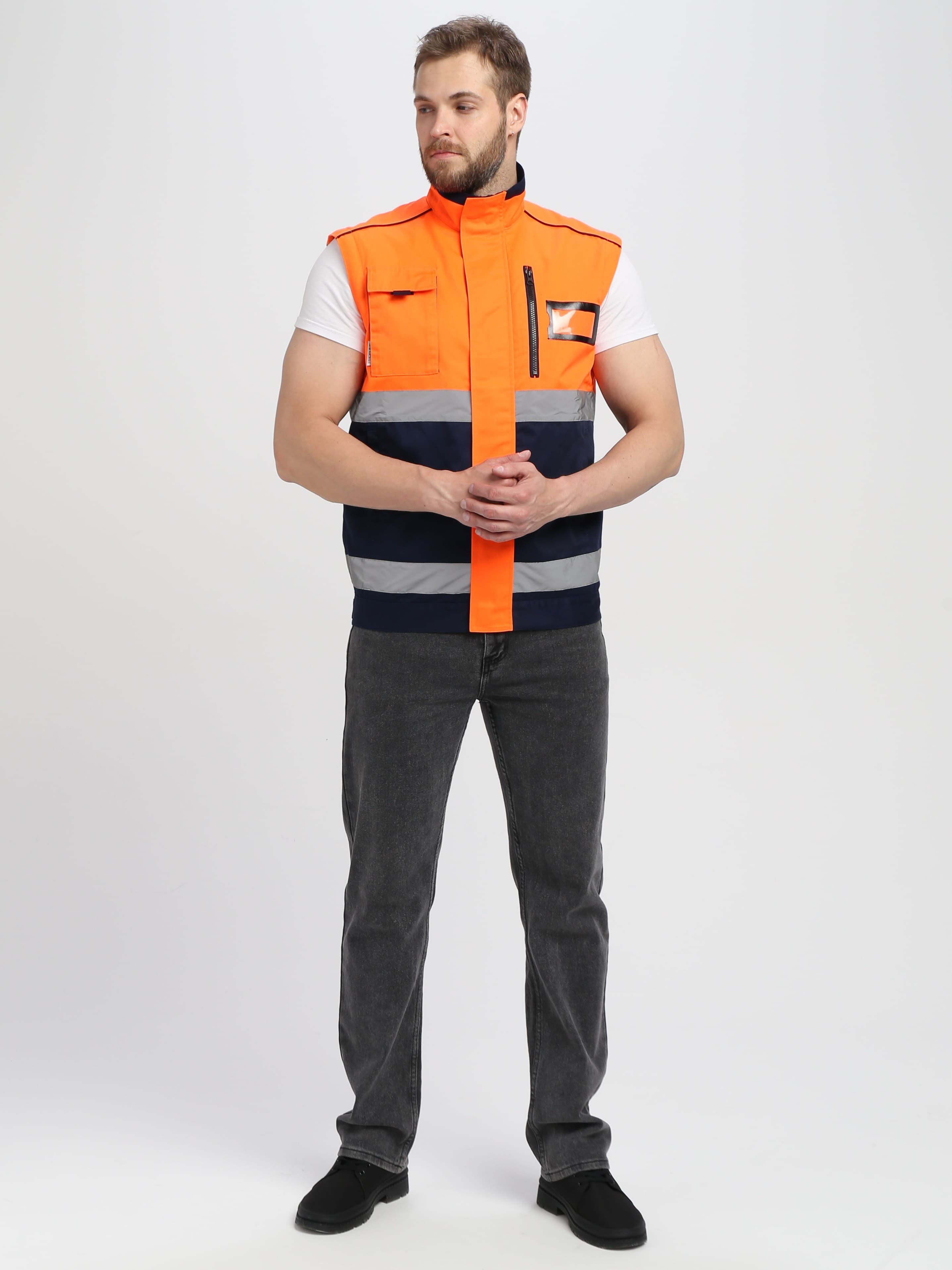 Куртка-трансформер сигнальная ProfLineSpecialist (тк.Смесовая МВО,240), оранжевый/т.синий