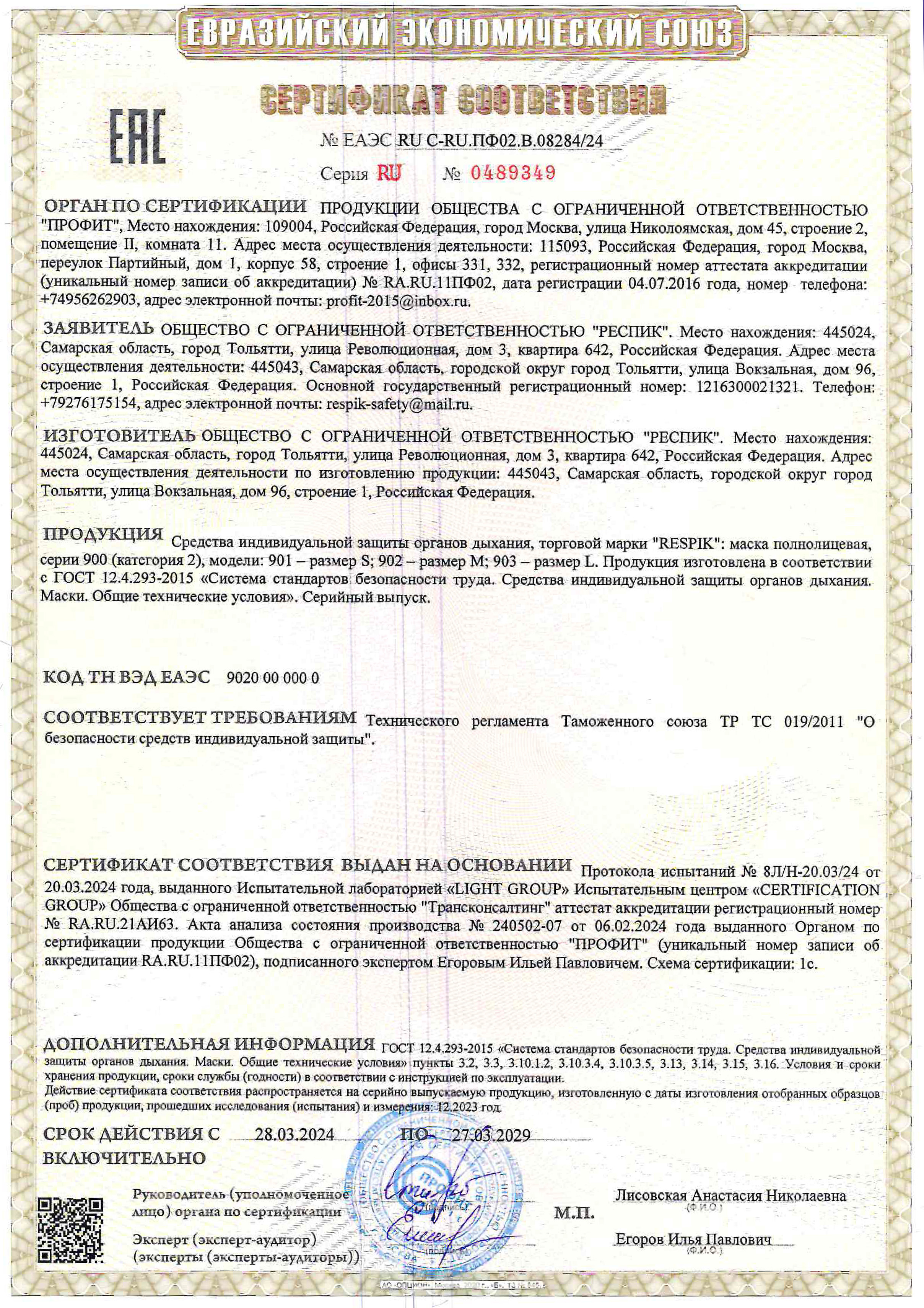 | ГОСТ: | 12.4.293-2015 |