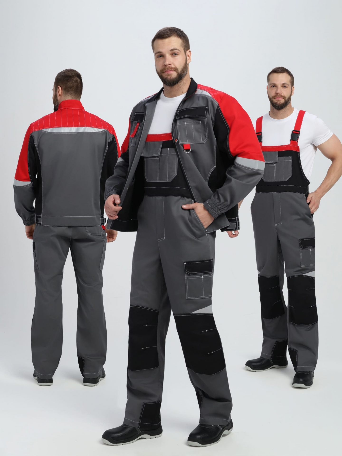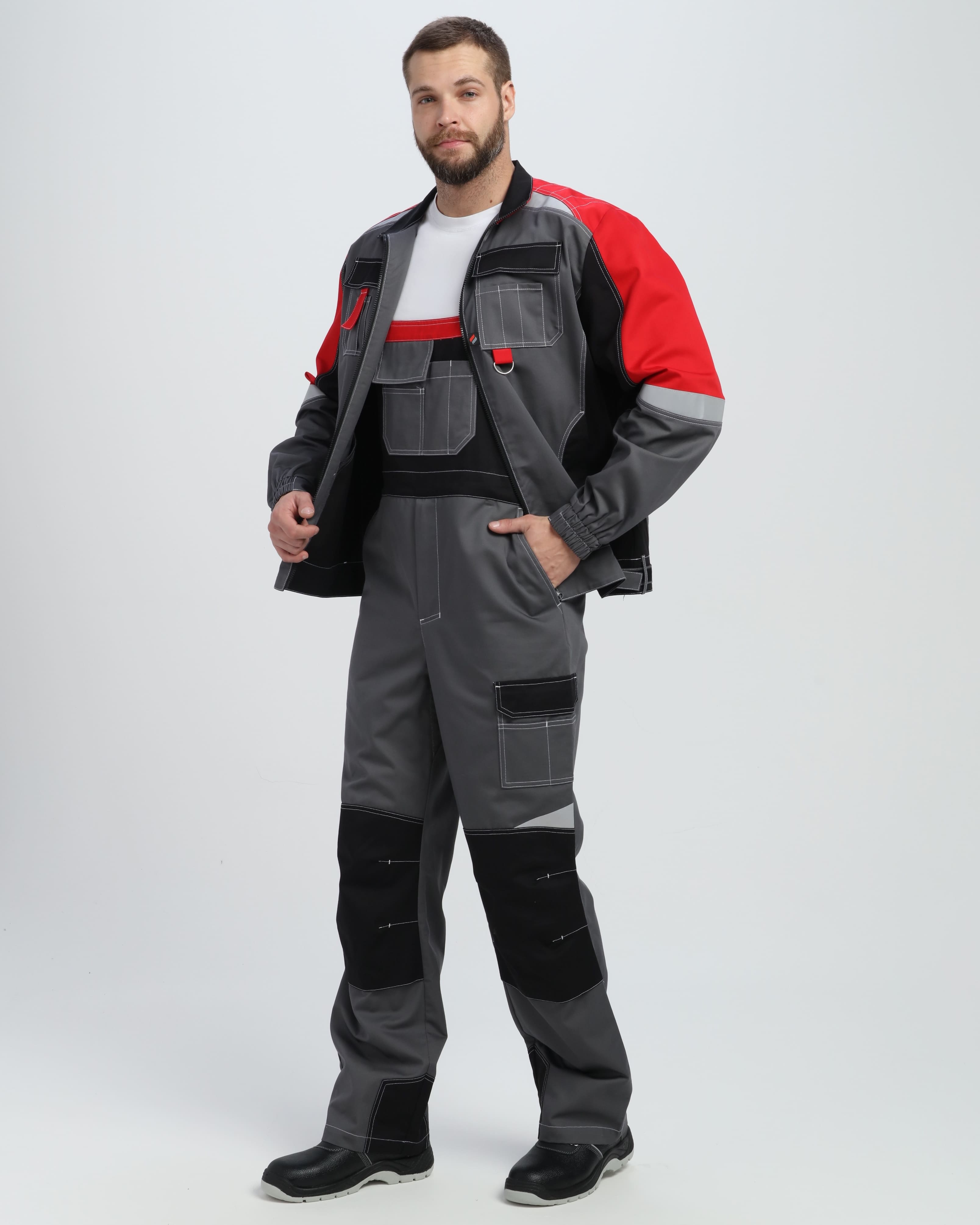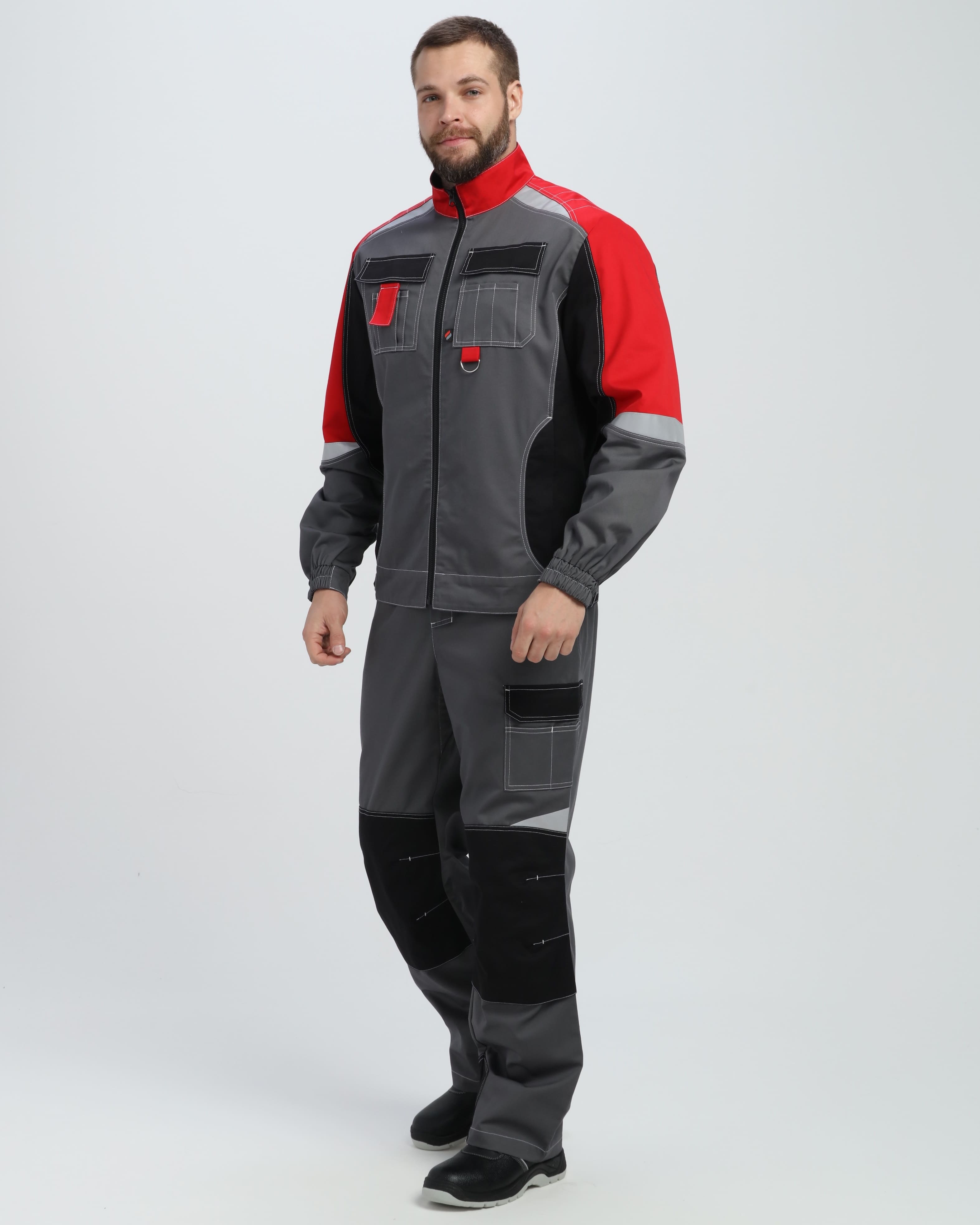 Костюм Вектрон-2 (тк.Смесовая МВО,240) п/к, серый/черный/красный