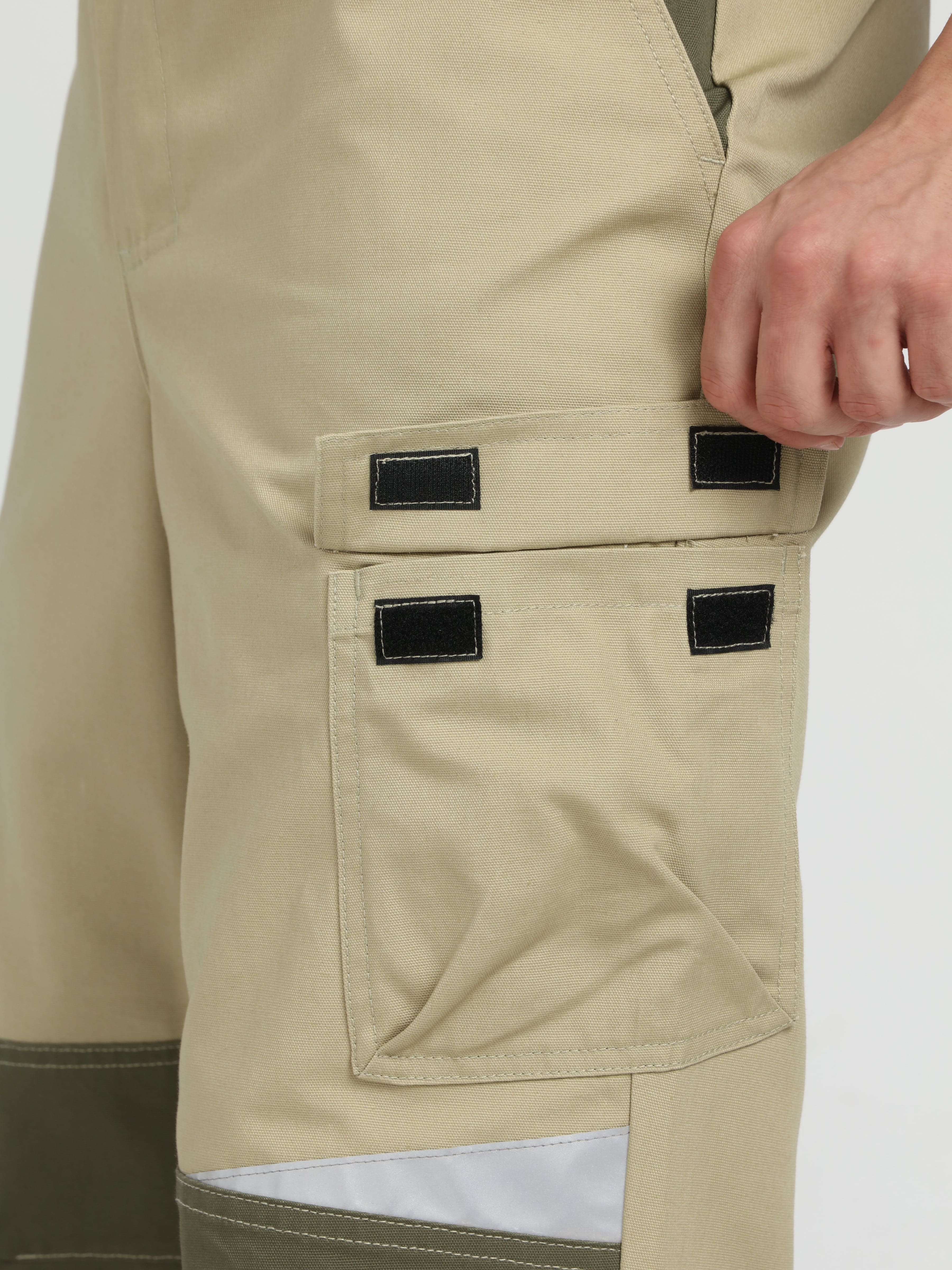 - Накладной карман с объемом на левом бедре для хранения инструментов.
