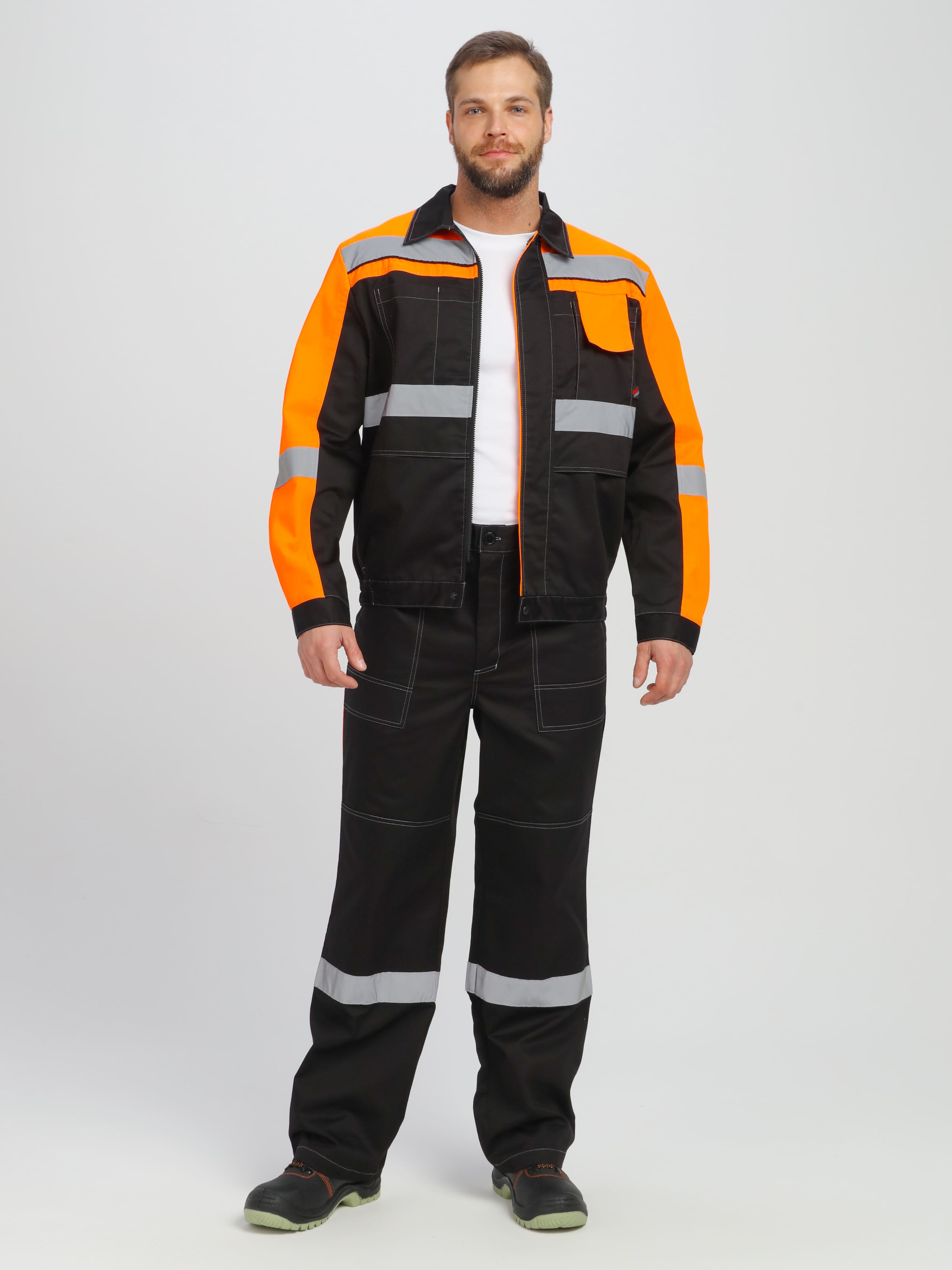 - Усиленная износостойкость – СОП 50 мм на куртке и брюках, а также усиленные наколенники продлевают срок службы костюма.