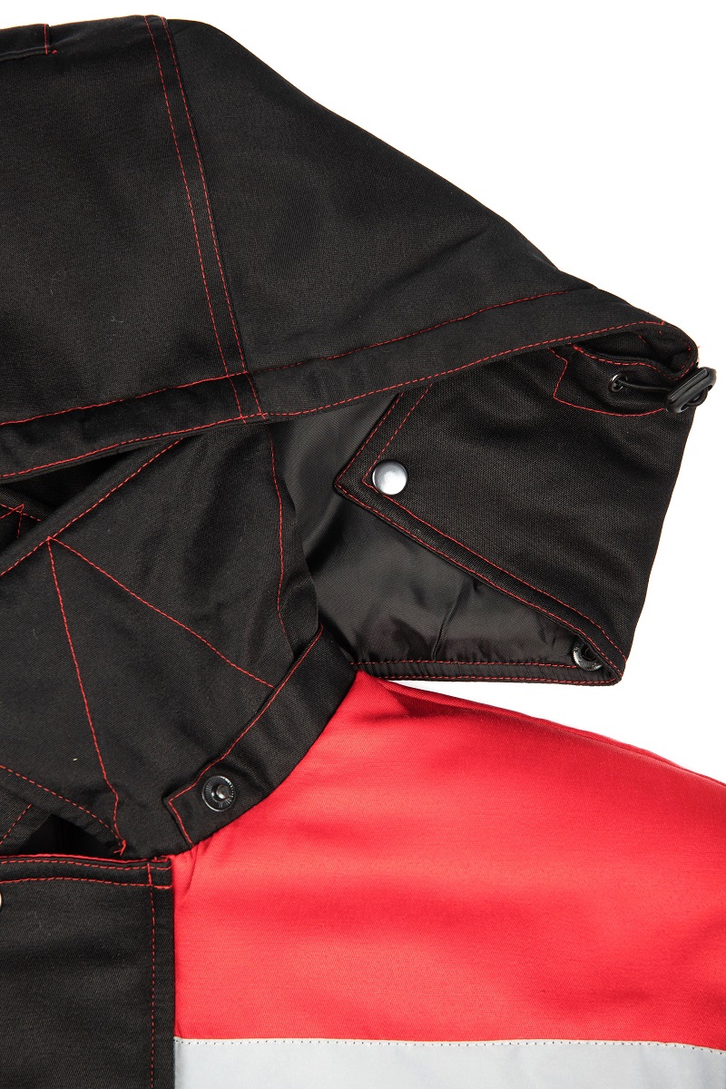- Кокетки из контрастной ткани со светоотражающими полосами (СОП 50 мм) на полочках и спинке