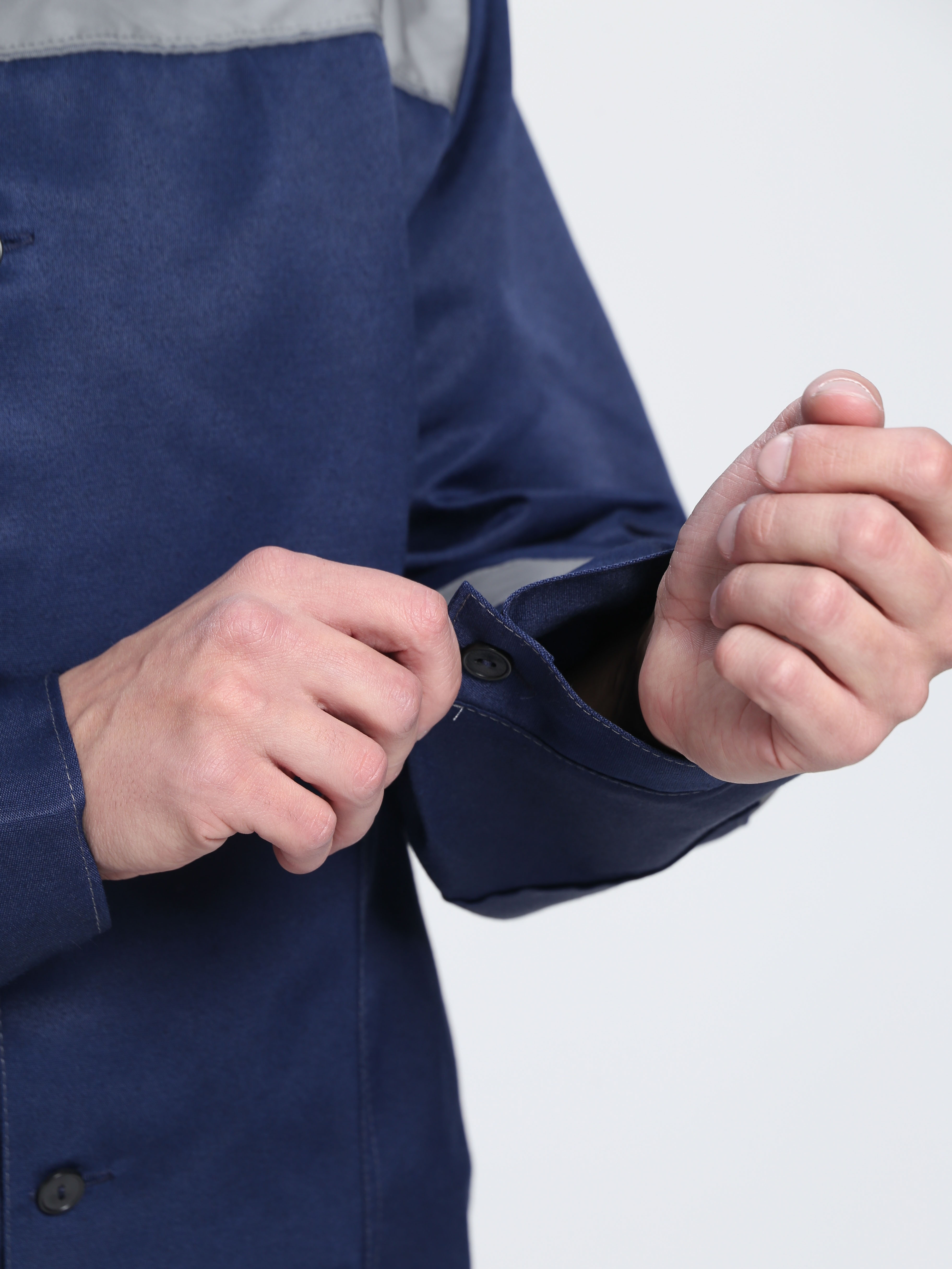 - Светоотражающие элементы на кокетках и манжетах рукавов для безопасности