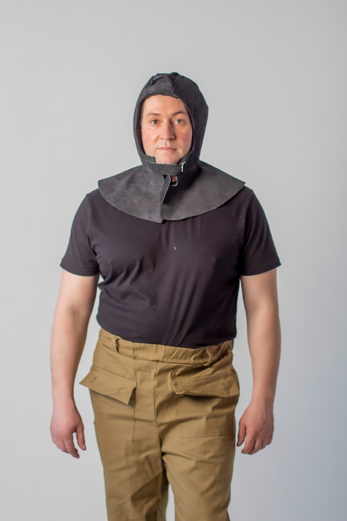 Классическая модель подшлемника по типу «строительного подшлемника со шнуровкой».Степень прилегания регулируется шнуровкой на затылочной части. Используется с маской сварщика, каской.Ширина пелерины – 15 см.