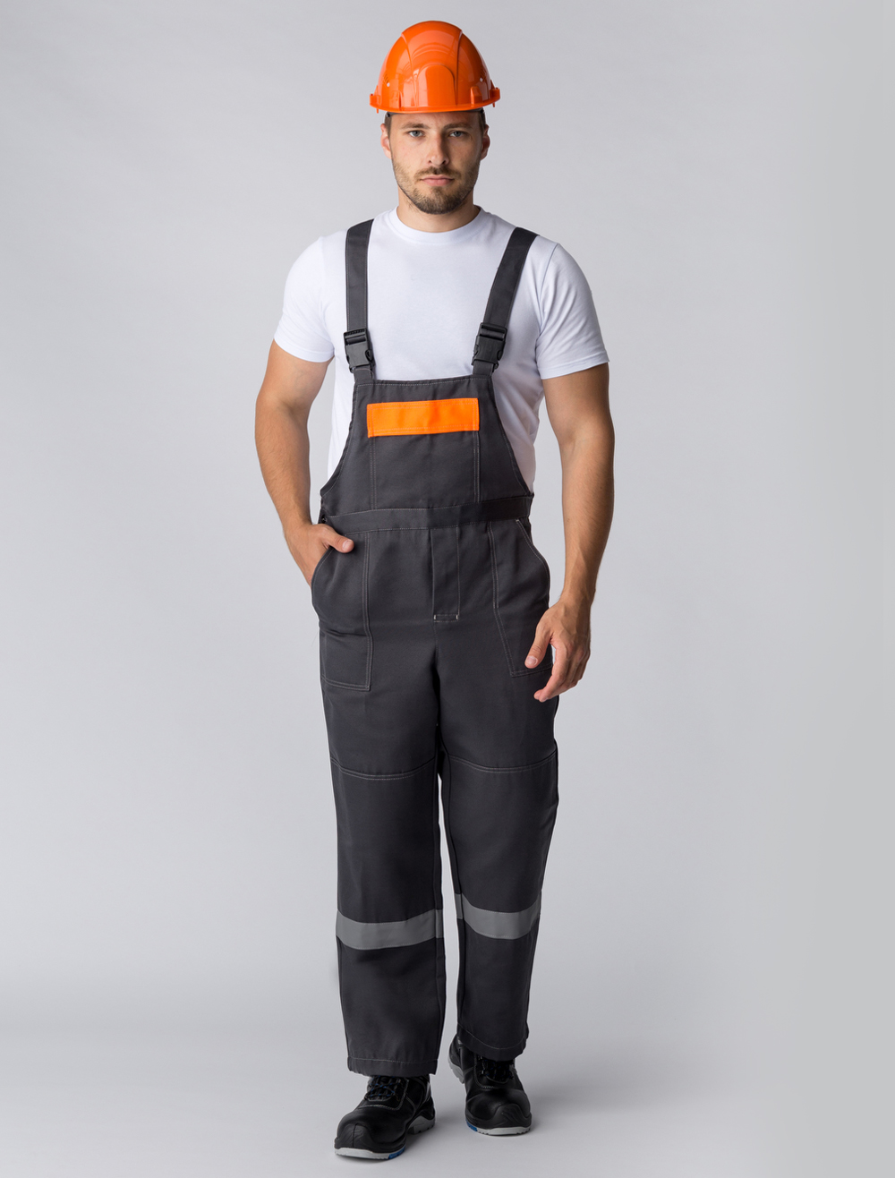 - Усиленные наколенники из основной ткани со светоотражающей полосой (СОП) для защиты и безопасности