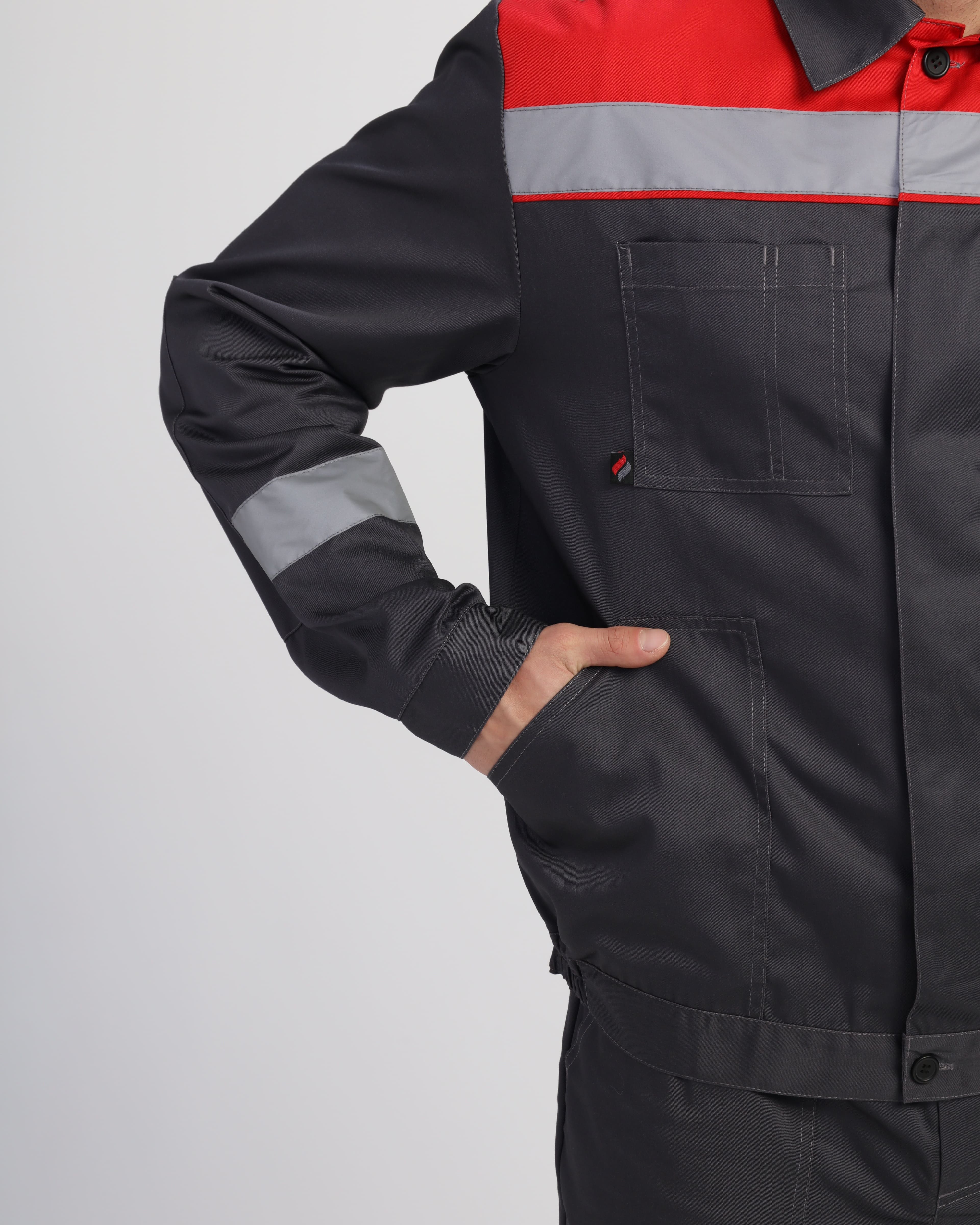 - Светоотражающие элементы на кокетках и манжетах рукавов для безопасности