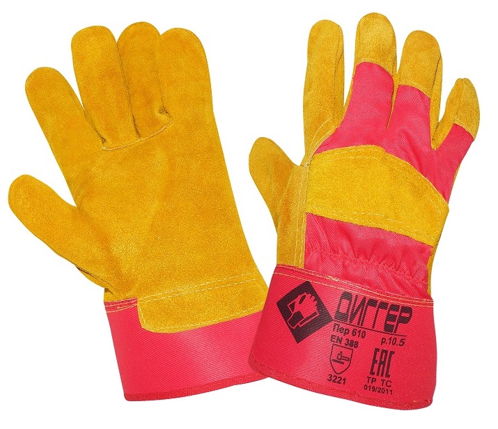 Перчатки спилковые комбинированные ДИГГЕР, желтый/красный, ПЕР610