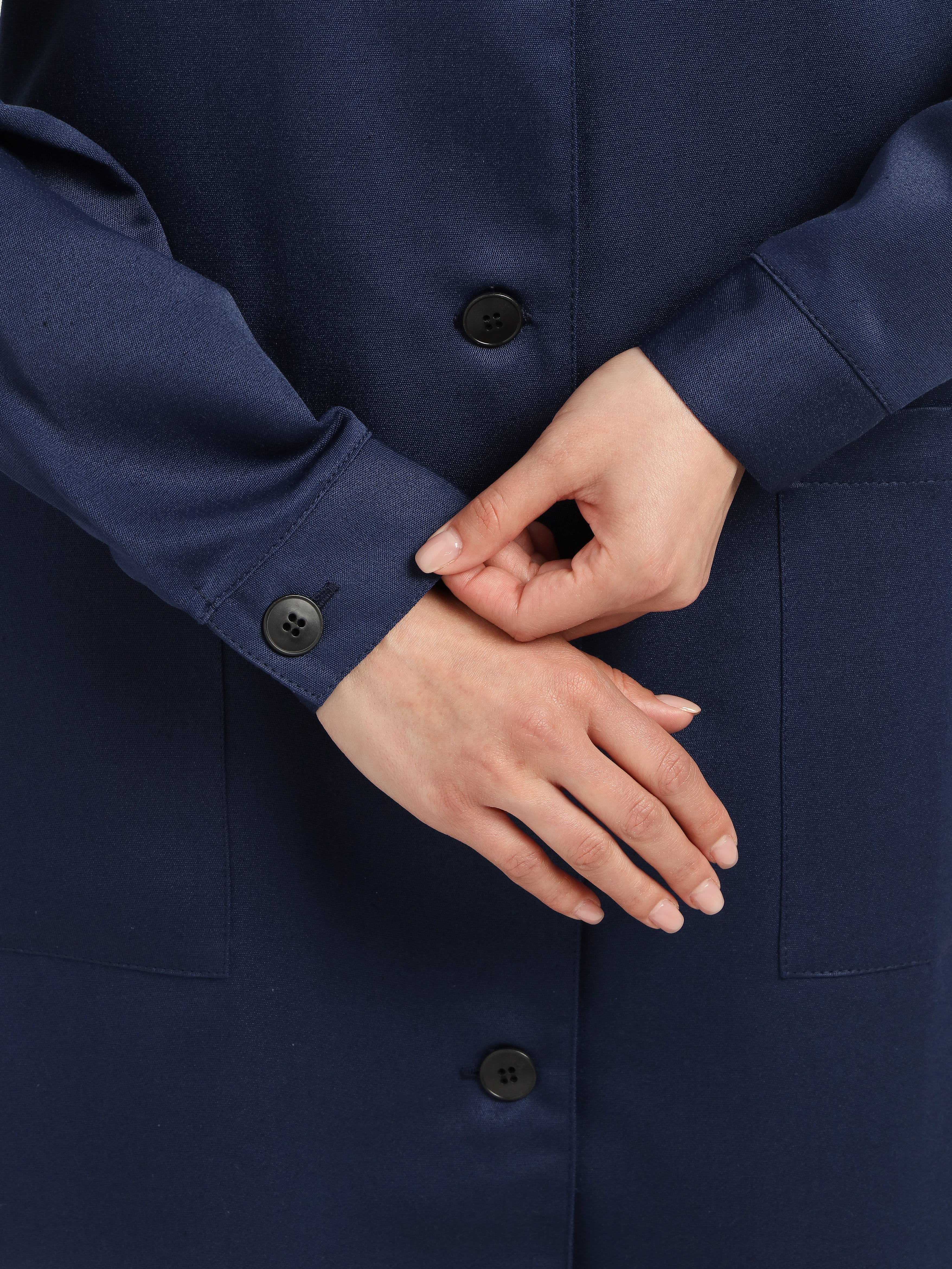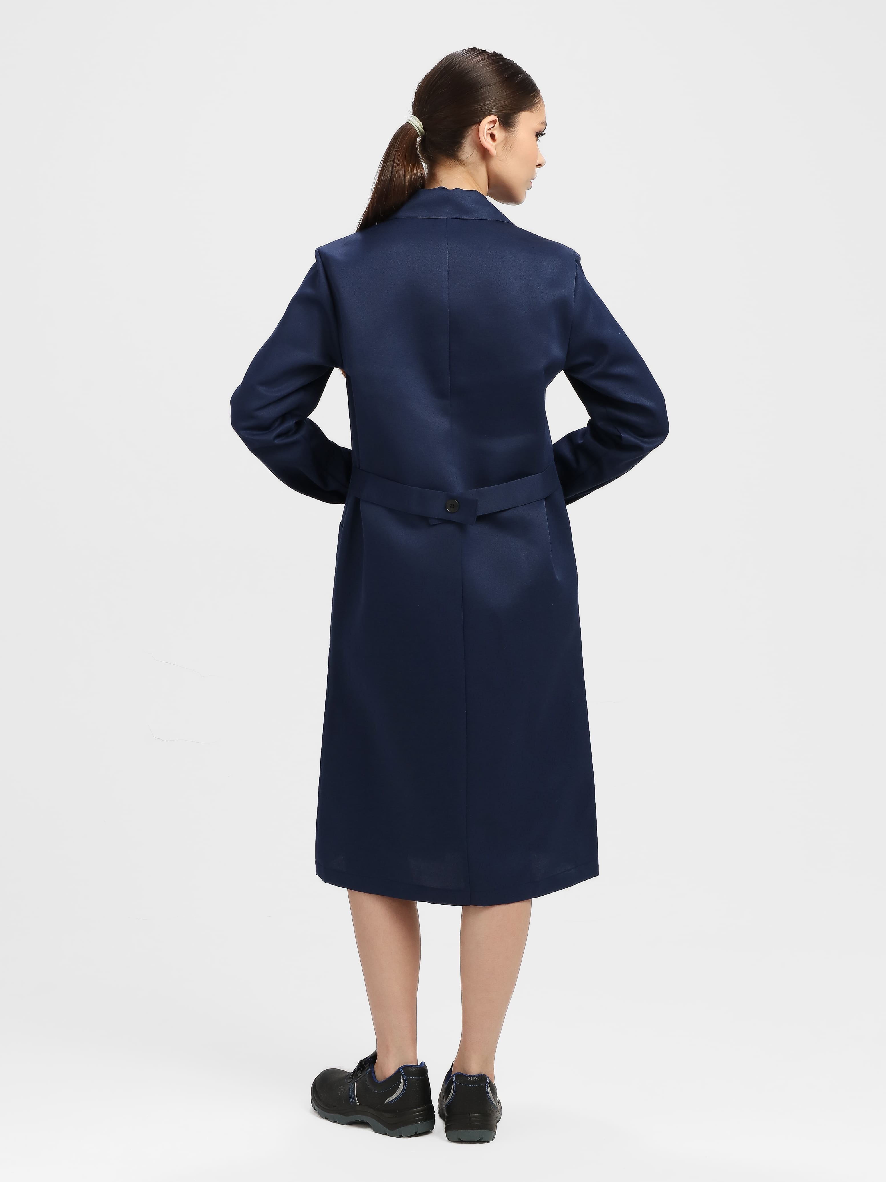 - Классический прямой силуэт ниже колена с застежкой на пять петель и пуговиц