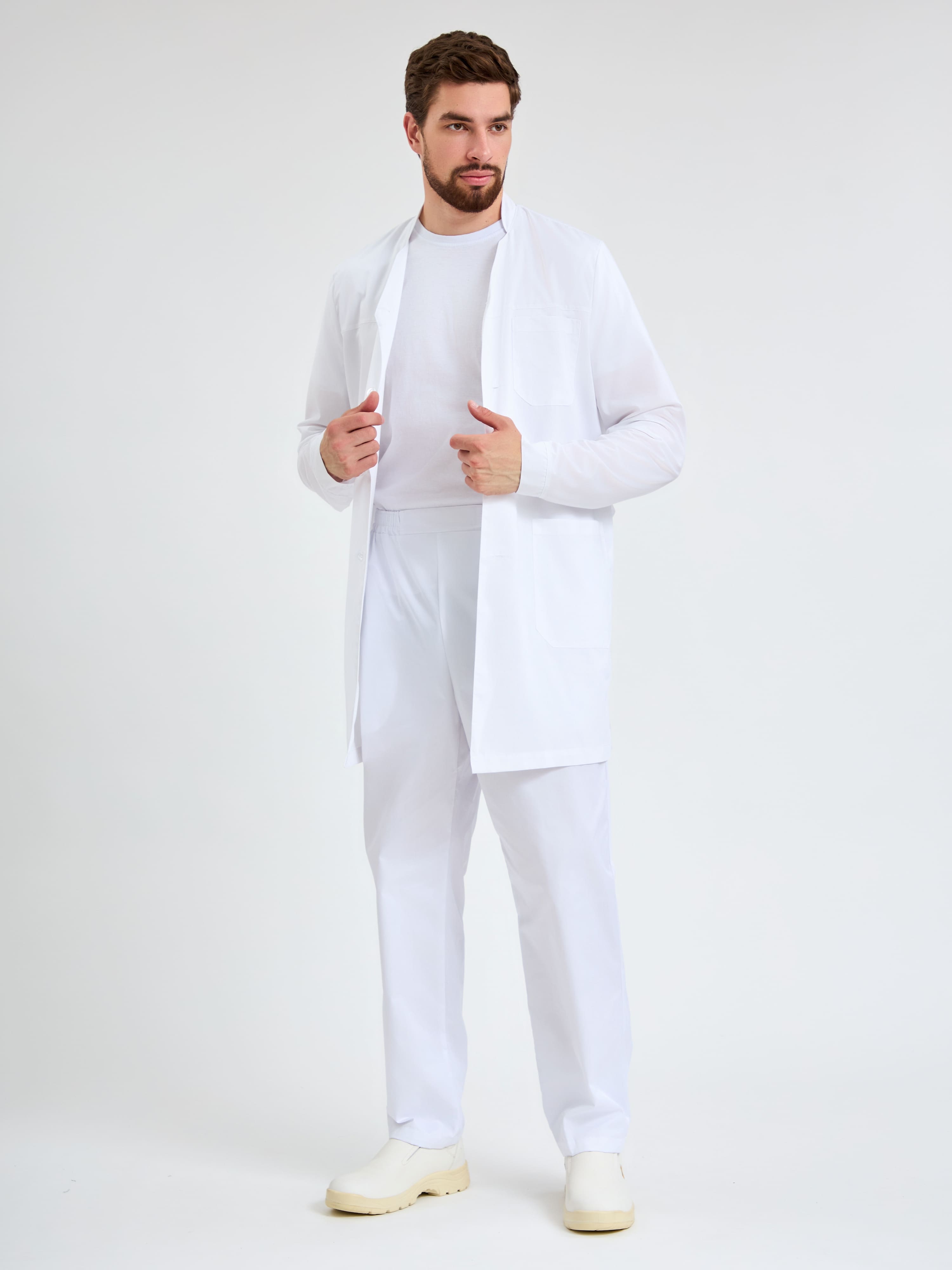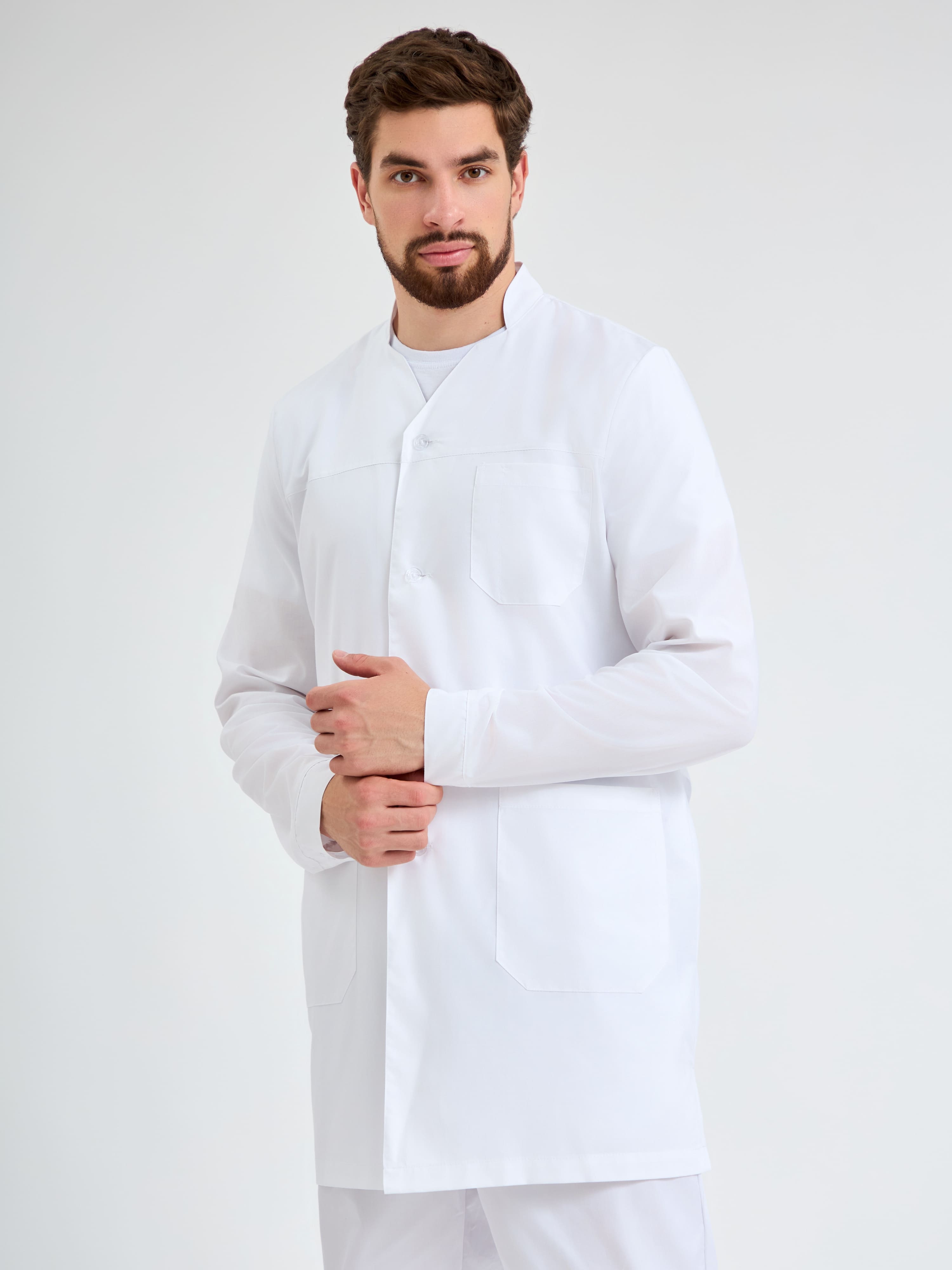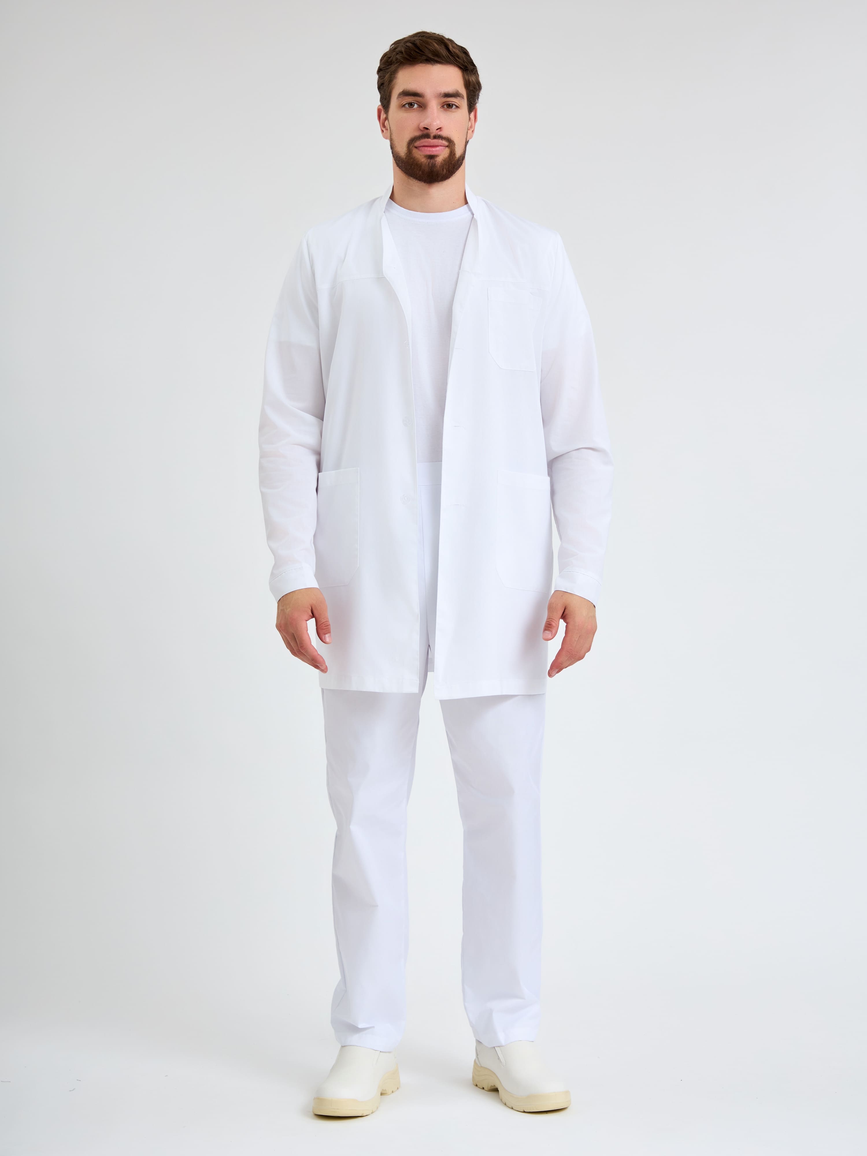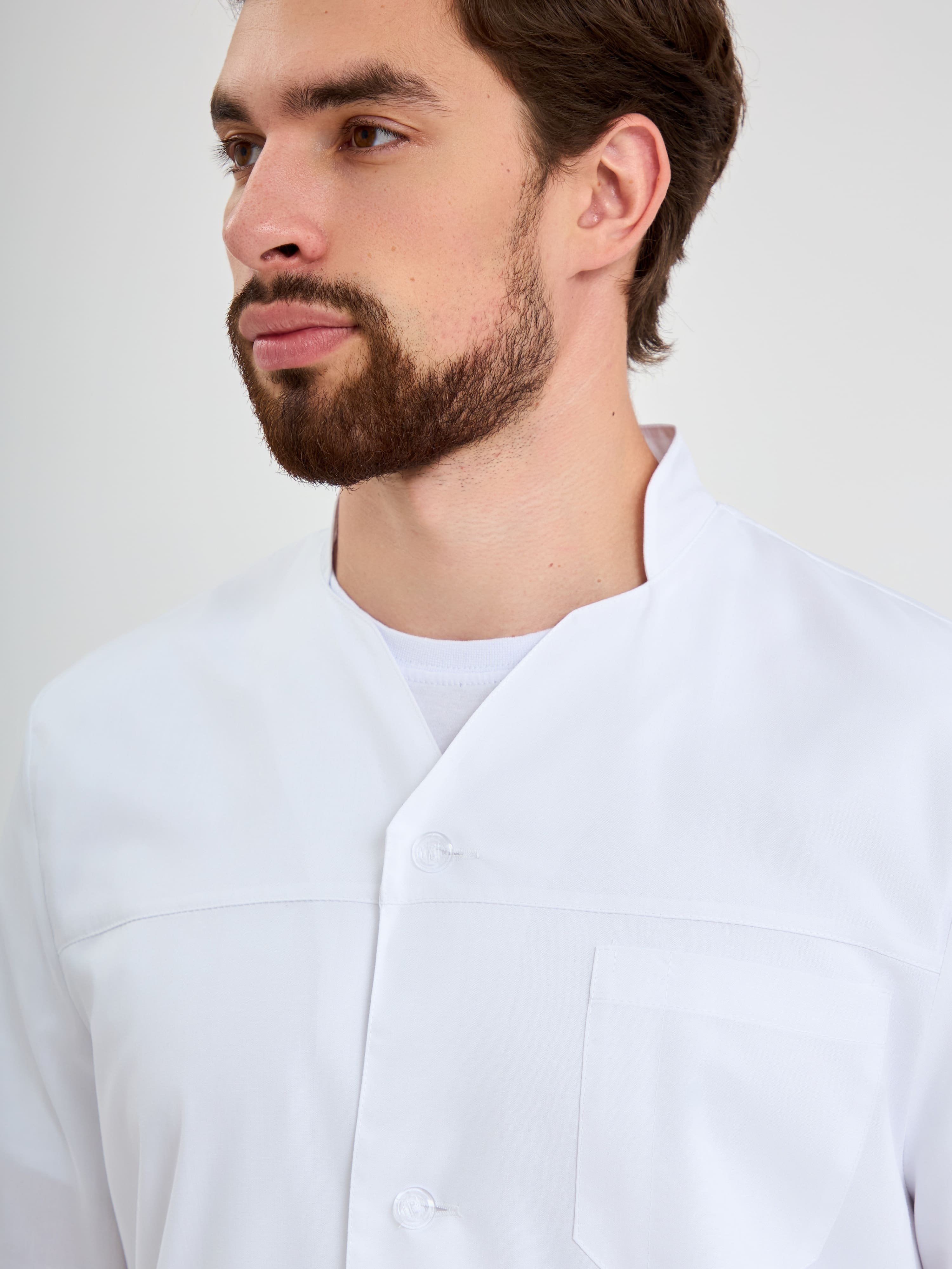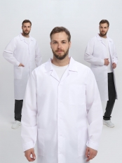 Халат мужской Симпл-001 (тк.Смесовая,120) MedLine, белый/т.синий
