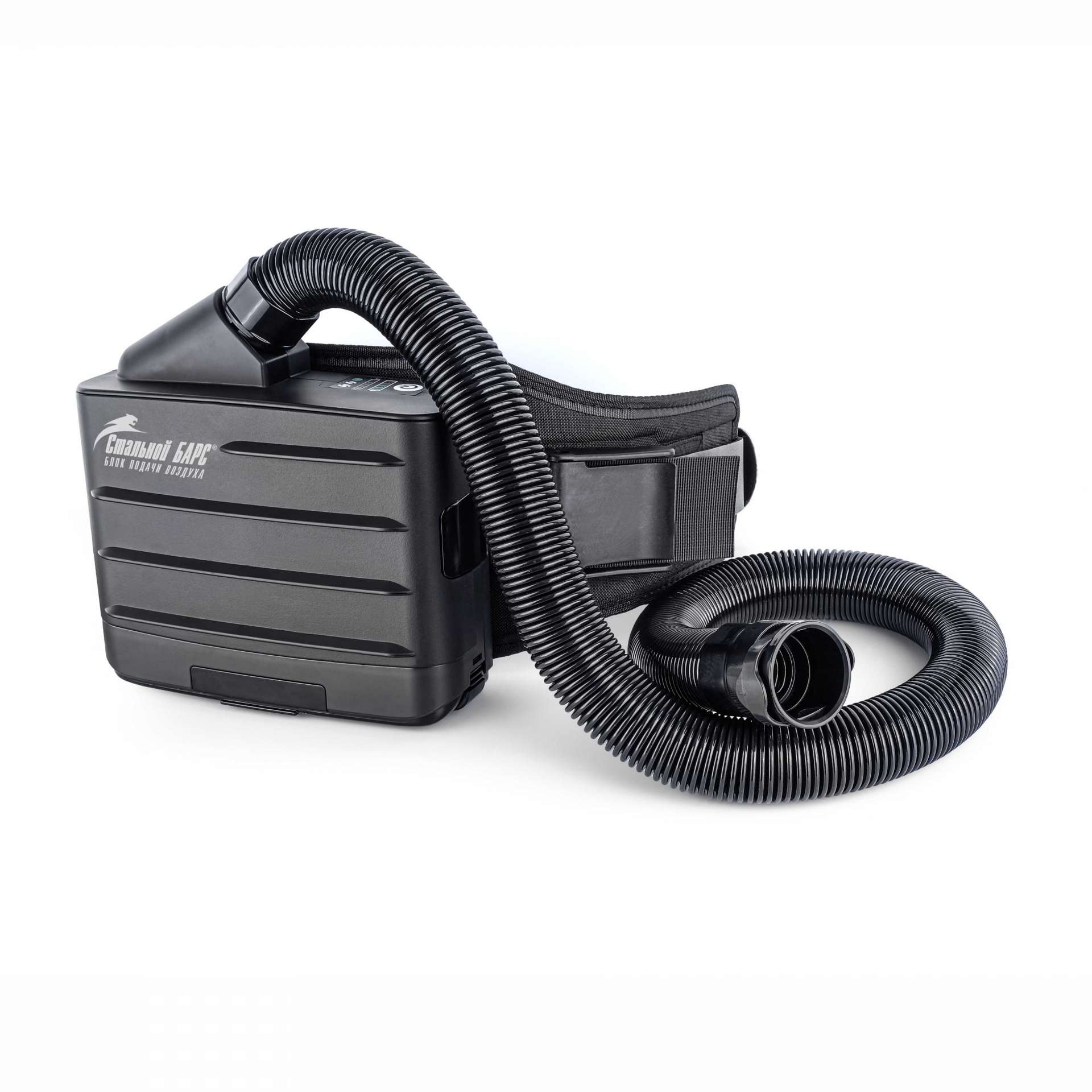 СИЗ фильтрующее для защиты глаз, лица и органов дыхания во всех средах, требующих высокой химической стойкости (твердые и жидкие аэрозоли: дым, пыль, волокна, туман) - блок подачи воздуха (БПВ) Стальной БАРС® с электронной системой регулирования и стабилизации расхода воздуха,подаваемого под лицевую часть, системой сигнализации запыления фильтра и разряда батареи, противоаэрозольным фильтром.