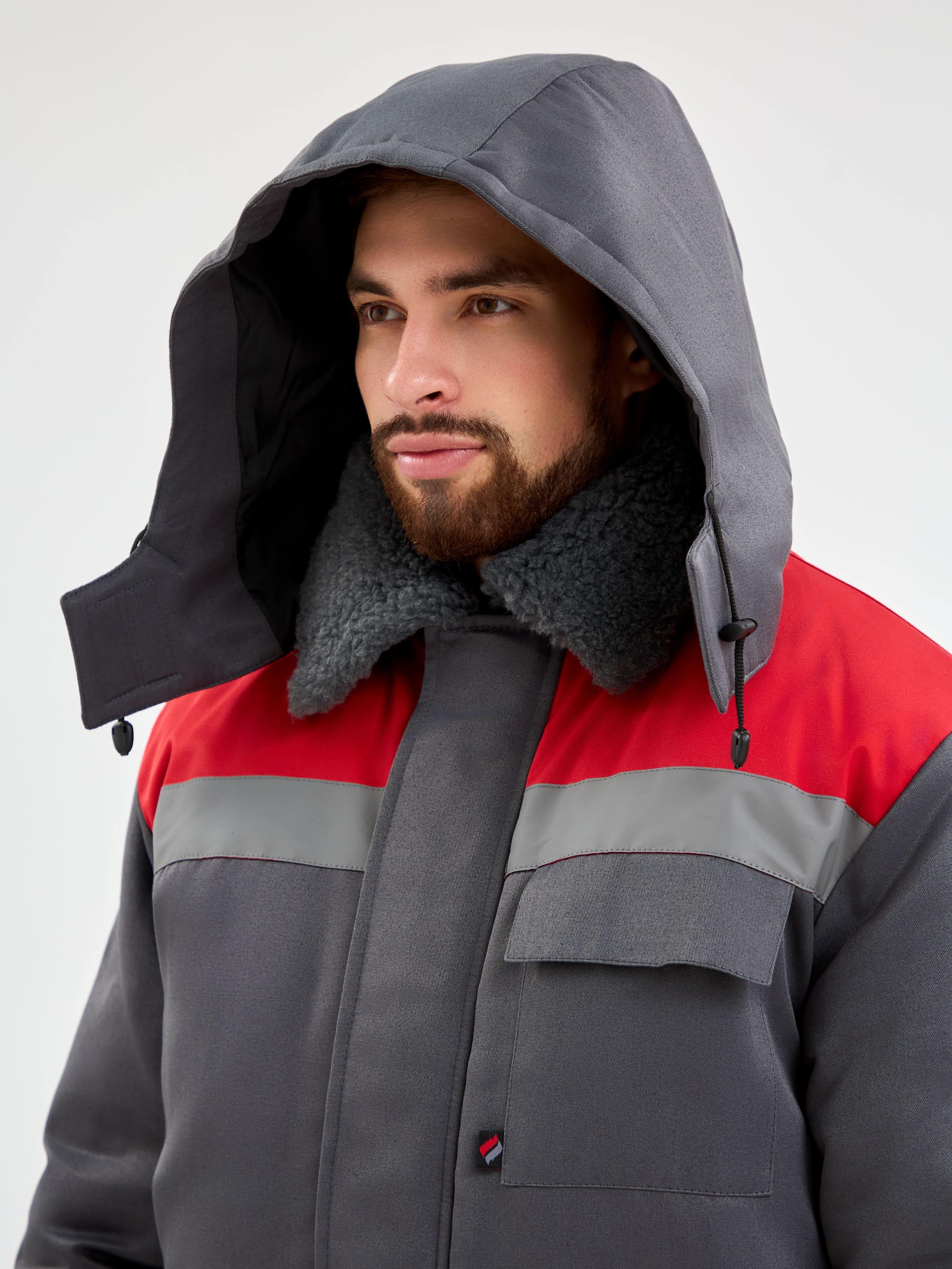 Костюм зимний Труженик-Ультра-1 СОП (тк.Смесовая,210) брюки, т.серый/красный