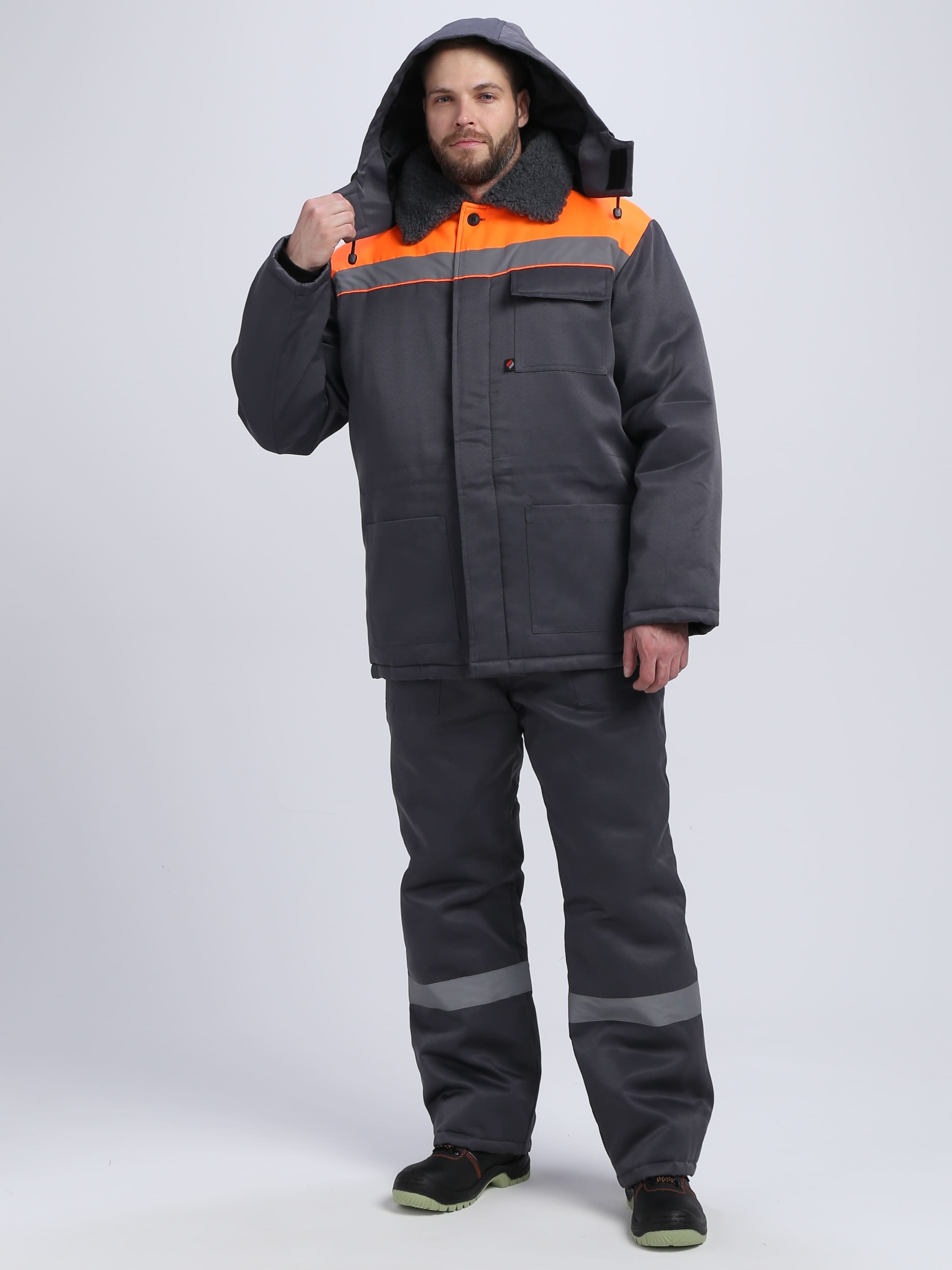 Костюм зимний Труженик-Ультра СОП (тк.Смесовая,210) брюки, т.серый/оранжевый