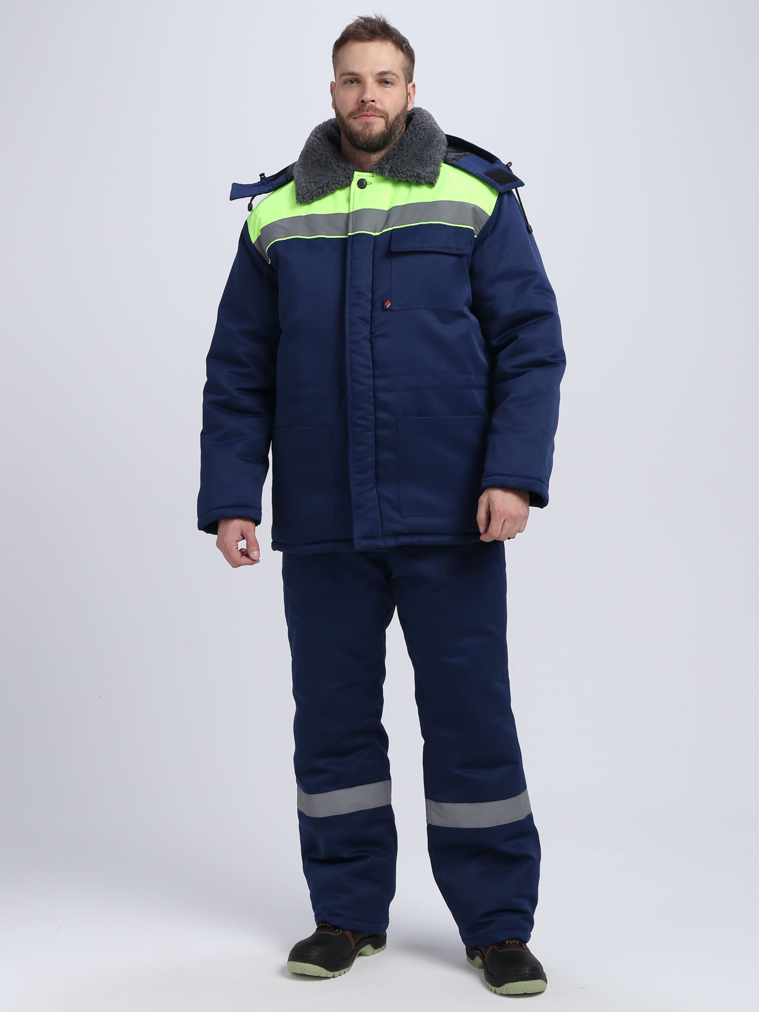 Костюм зимний Труженик-Ультра СОП (тк.Смесовая,210) брюки, т.синий/лимонный