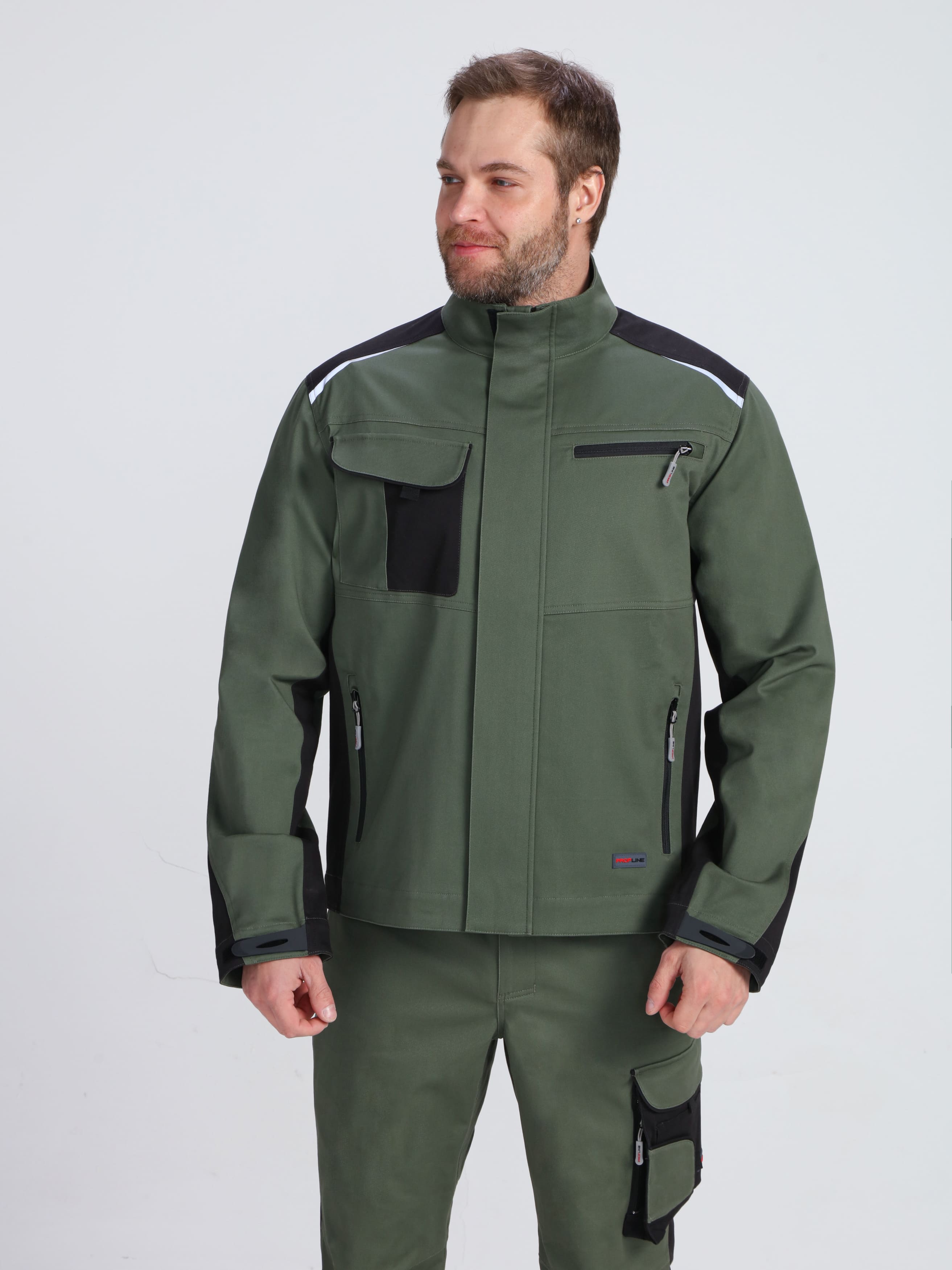 Куртка ProfLineLeader (тк.Хлопок/Спандекс,260), хаки/черный