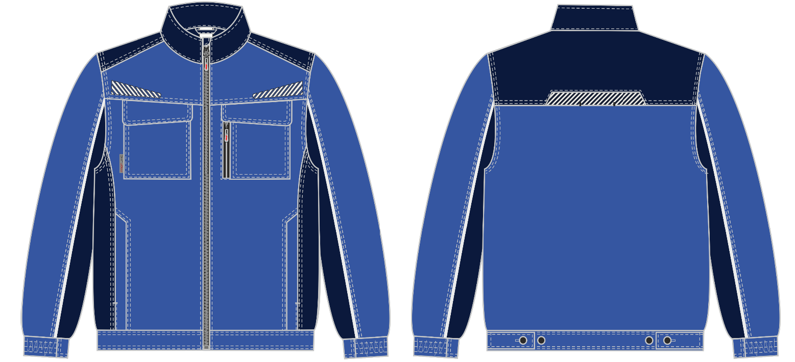 - Светоотражающие элементы расположены на плечевых кокетках, вставке на спинке и на рукавах, что обеспечивает повышенную видимость и безопасность