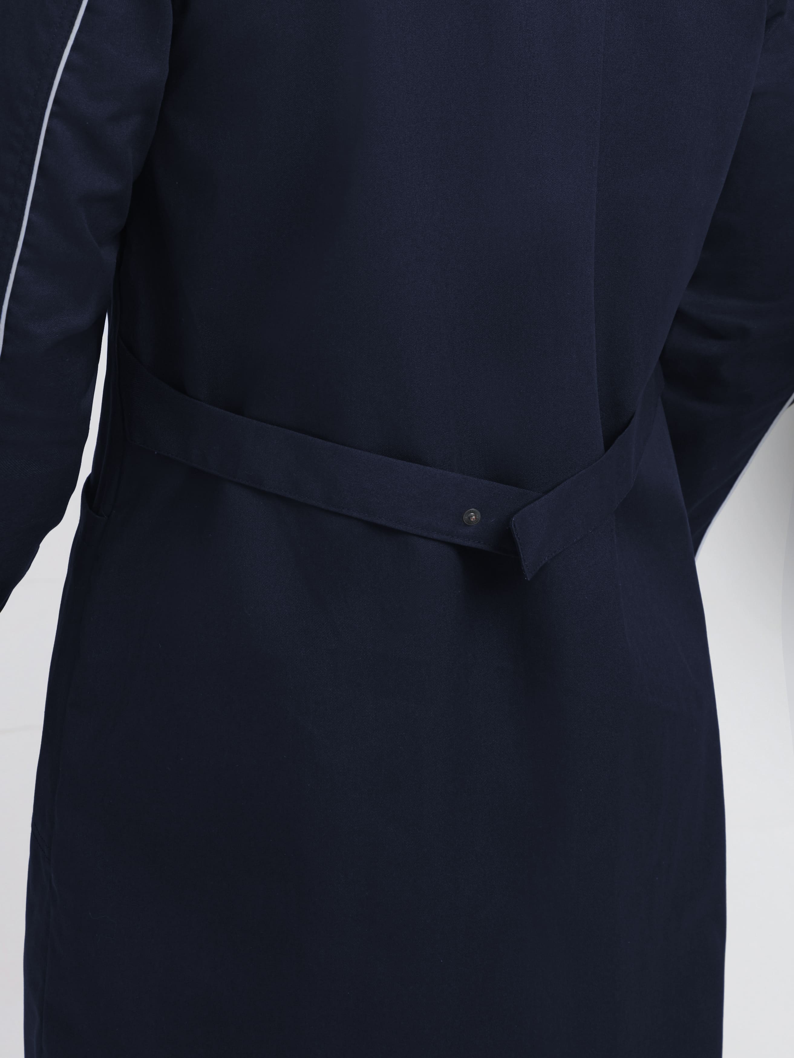 - Регулировка посадки: пояс по линии талии с скрытыми кнопками для точной подгонки по фигуре и манжеты с внутренней резинкой для комфортной посадки