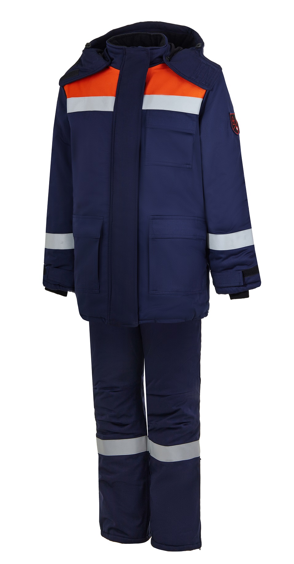 Костюм выполнен из термоогнестойкой, антистатической ткани Флеймтуфф (Flametuff) (88% х/б, 12% ПА, в т.ч. 2% антистатическая нить) плотностью 265 г/кв.м c НМВО, дополнительным слоем Флеймтуфф (Flametuff) (88% х/б, 12% ПА, в т.ч. 2% антистатическая нить ) плотностью 305 гр/кв.м (усилительные накладки) с НМВО, c термостойким утеплителем плотностью 150 г/кв.м и подкладкой плотностью 170 г/кв.м