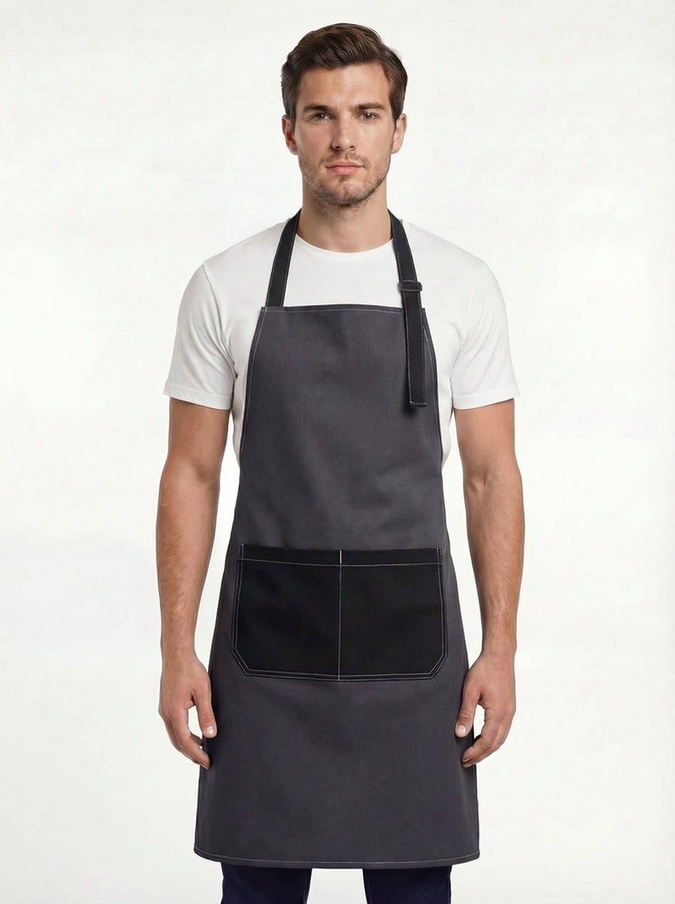 Фартук с грудкой Модеринт (тк.Смесовая,210), серый/черный