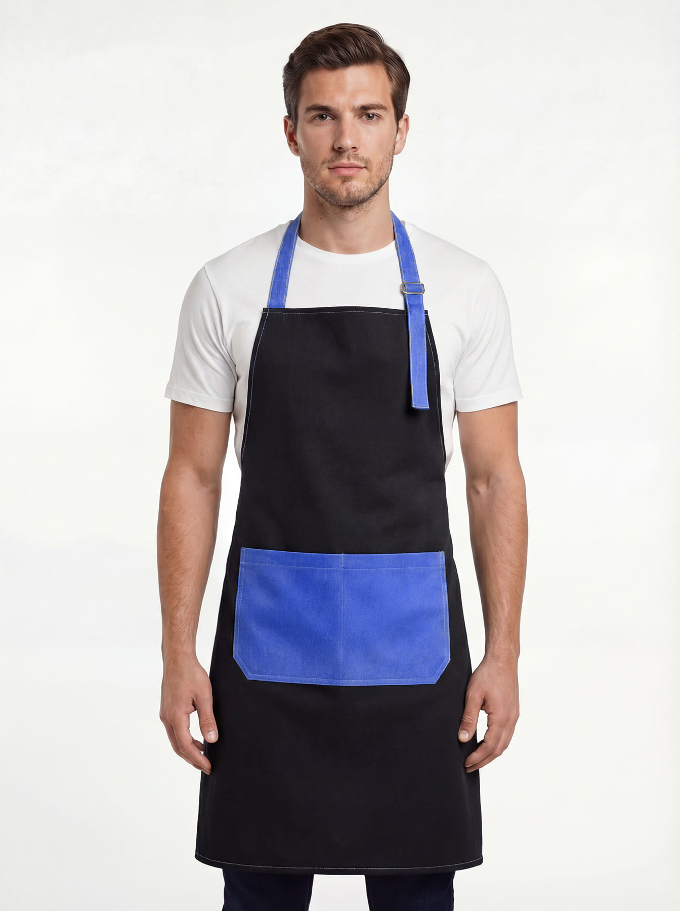 Фартук с грудкой Модеринт (тк.Смесовая,210), черный/васильковый