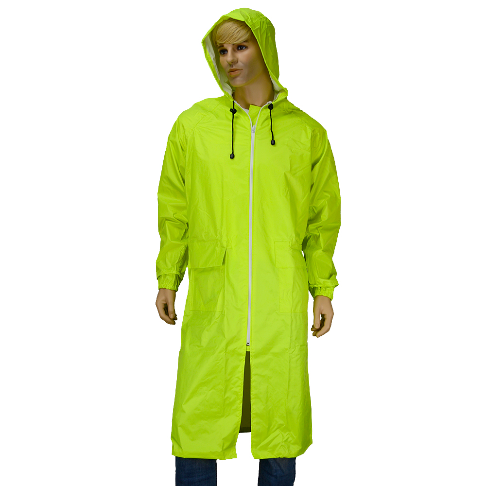 Плащ для защиты от воды с застежкой на молнию с ветрозащитной планкой, имеет капюшон, накладные карманы с влагозащитными клапанами, прошитые и герметично проклеееные швы, манжеты на рукавах. Спинка с кокеткой, отверстиями для вентиляции, закрытыми клапаном. Объем капюшона регулируется по лицевому вырезу шнуром.