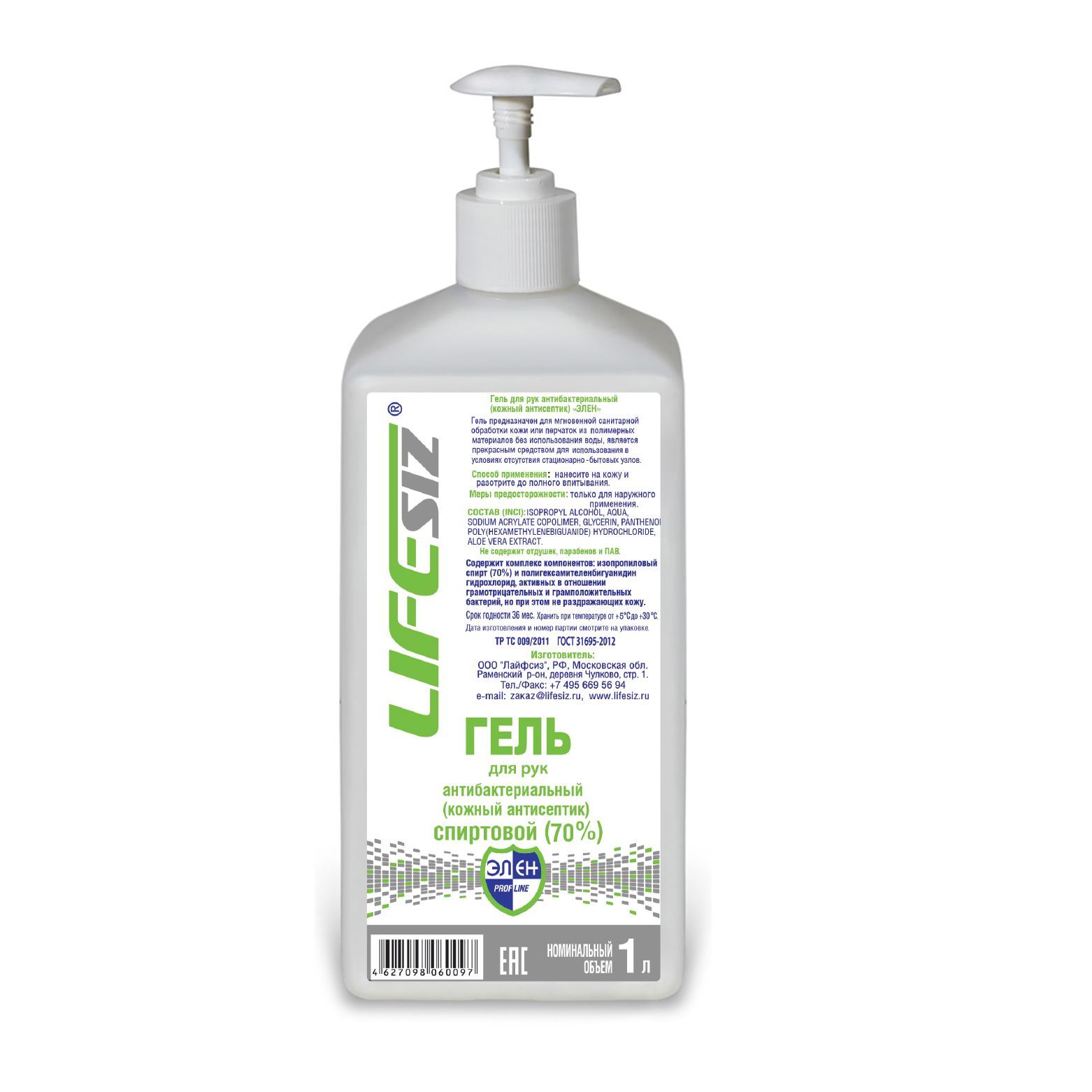 Гель антибактерицидный Элен™ 1л (спирт 70%), арт.1037