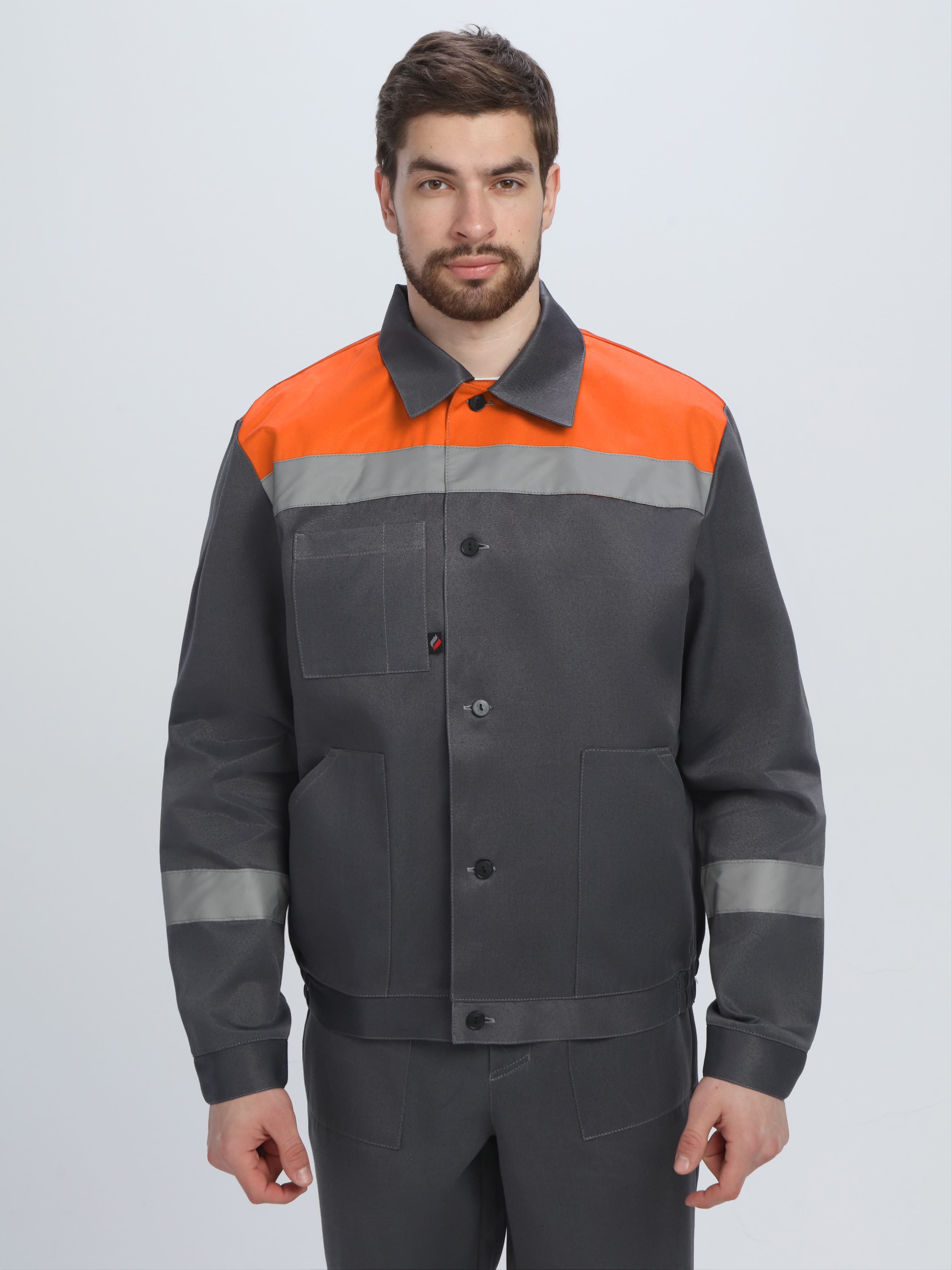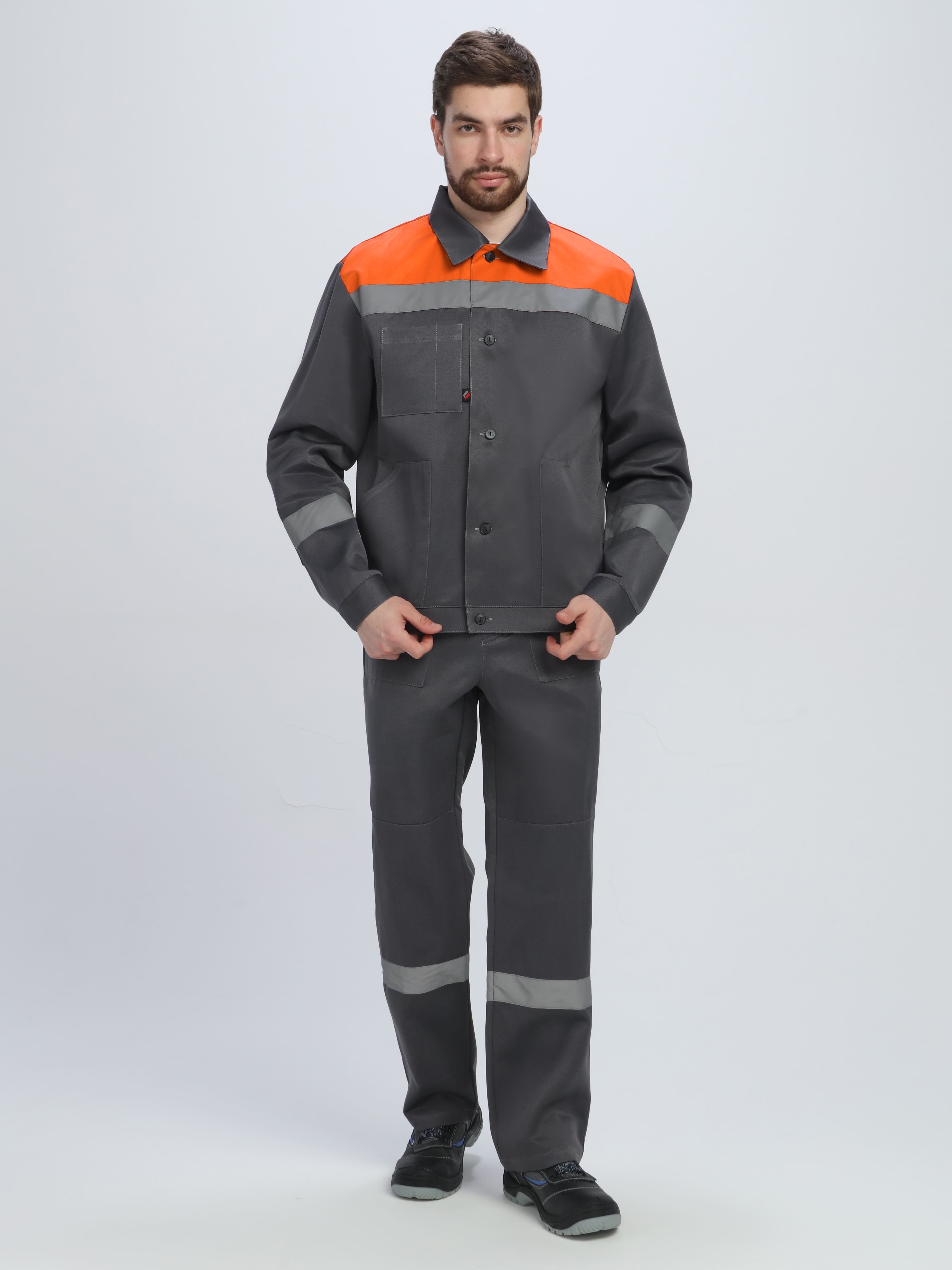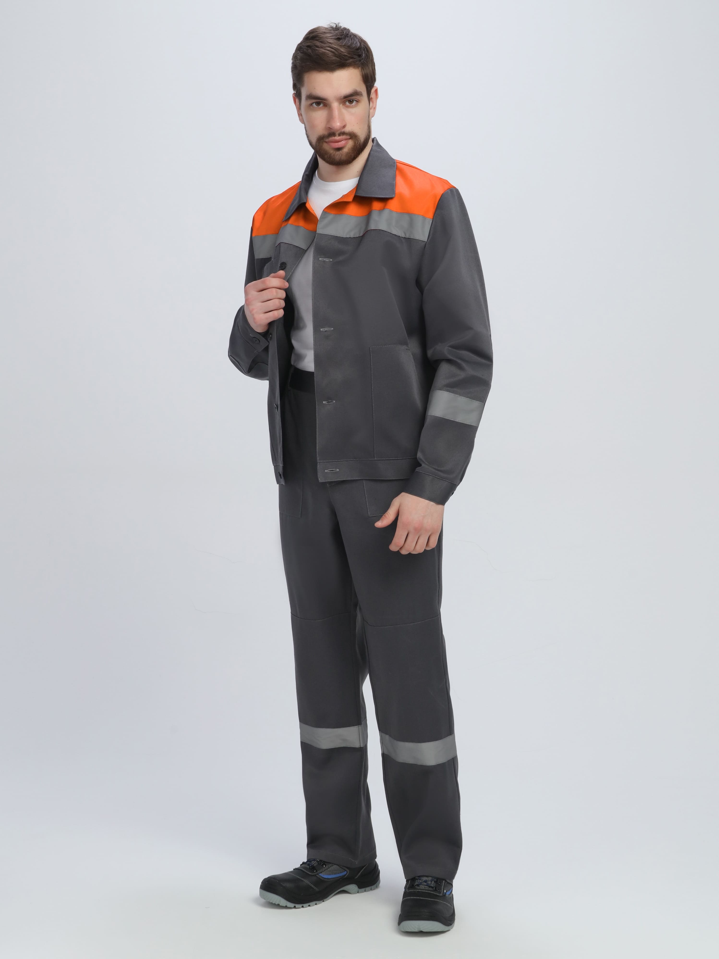 Костюм Лигор-1 СОП (тк.Смесовая,210) брюки Леон, т.серый/оранжевый