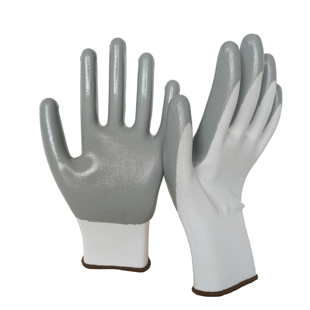 -тонкие трикотажные бесшовные нейлоновые перчатки с нитриловым покрытием на ладони и кончиках пальцев