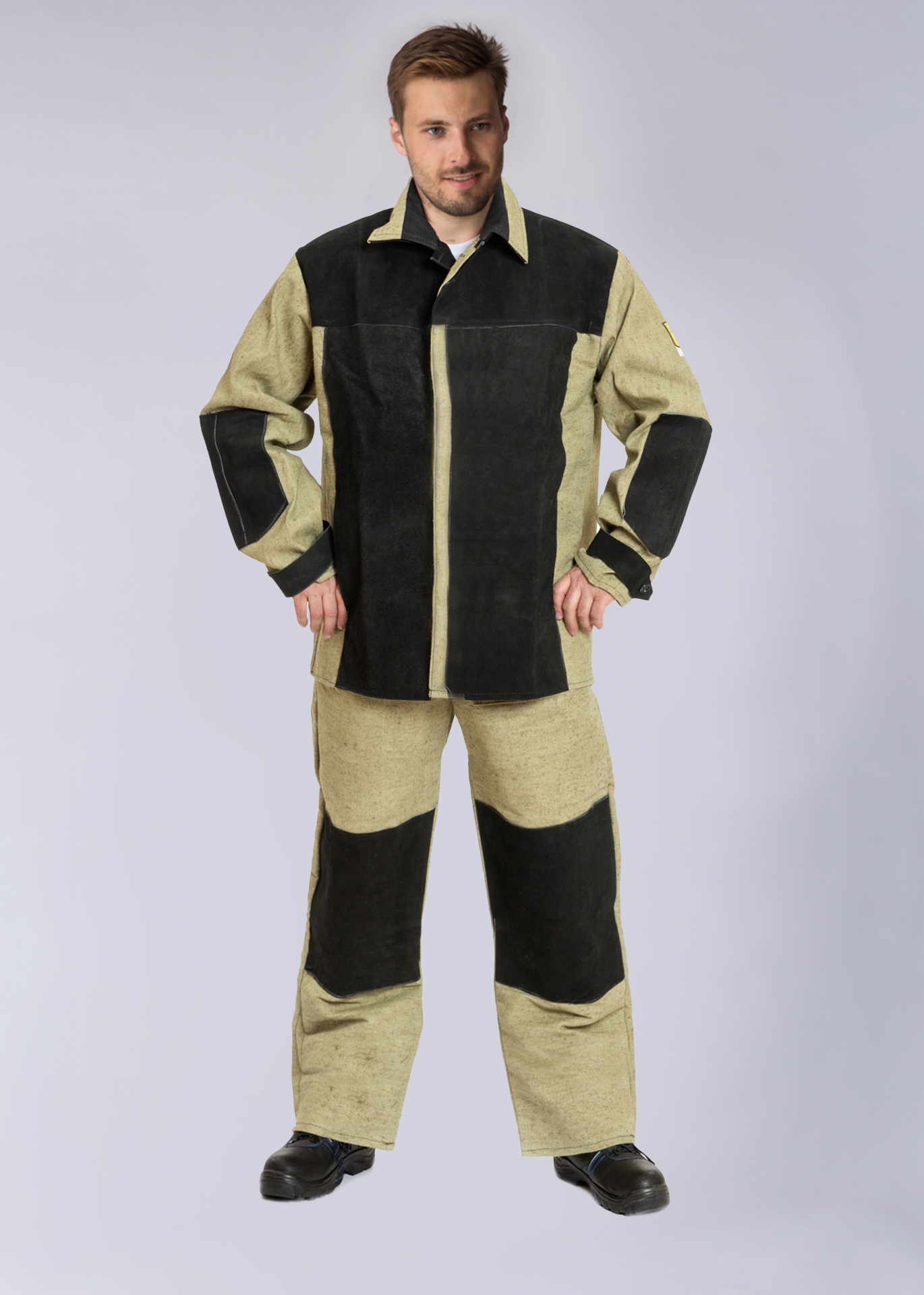 Костюм сварщика комбинированный 2 кл.защиты (тк.Брезент,550/Спилок S=2,3), черный/бежевый