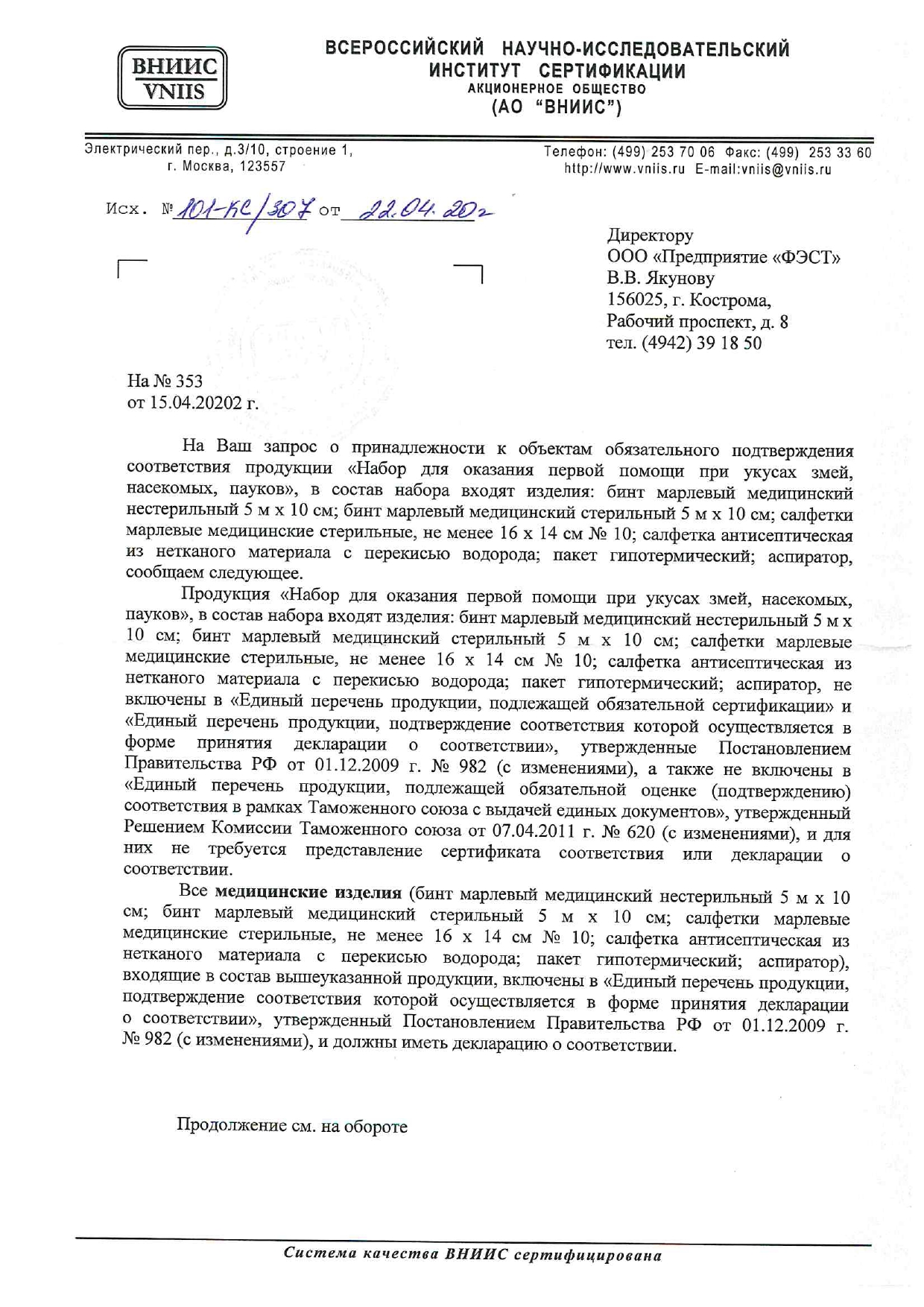 Набор ФЭСТ первой помощи при укусе животных (арт.2176)
